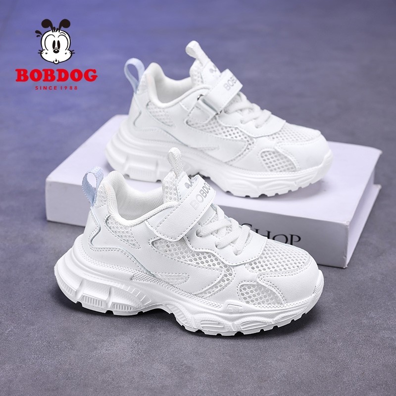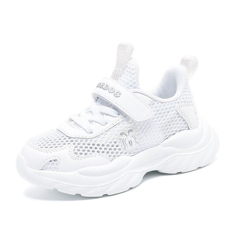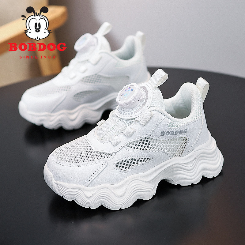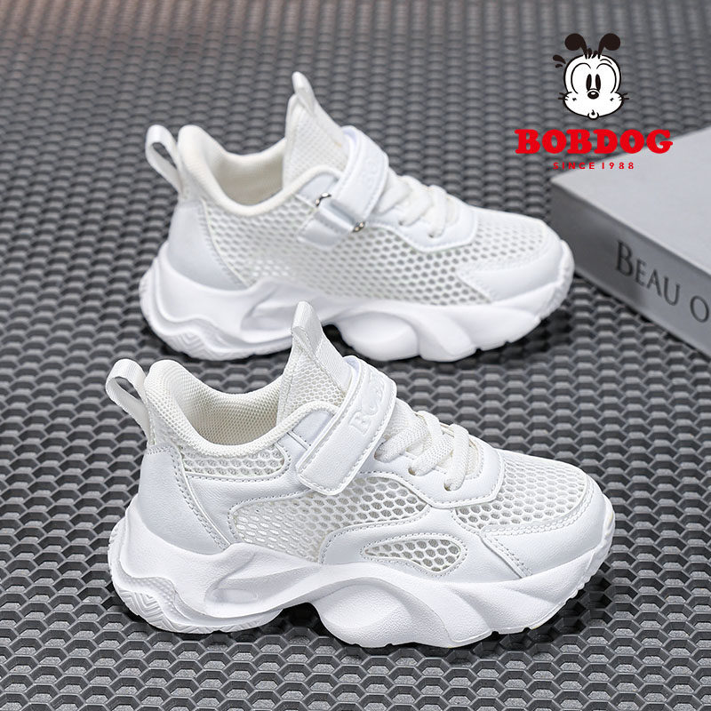 巴布豆儿童小白鞋男童运动鞋2025夏季新款网面透气休闲白色鞋子女