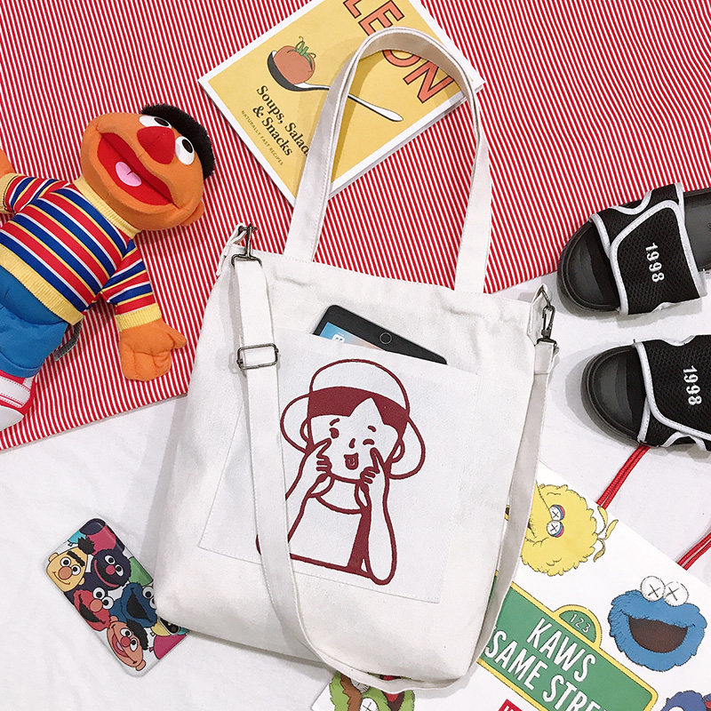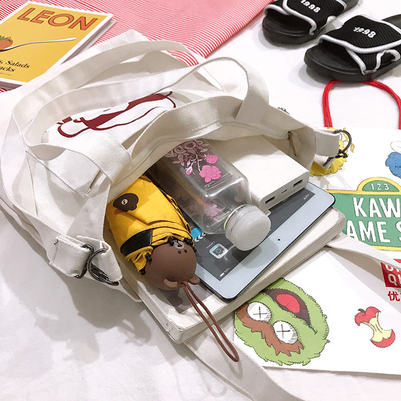 帆布袋女单肩ins风日系大容量简约百搭斜挎包学生装书手提布袋子