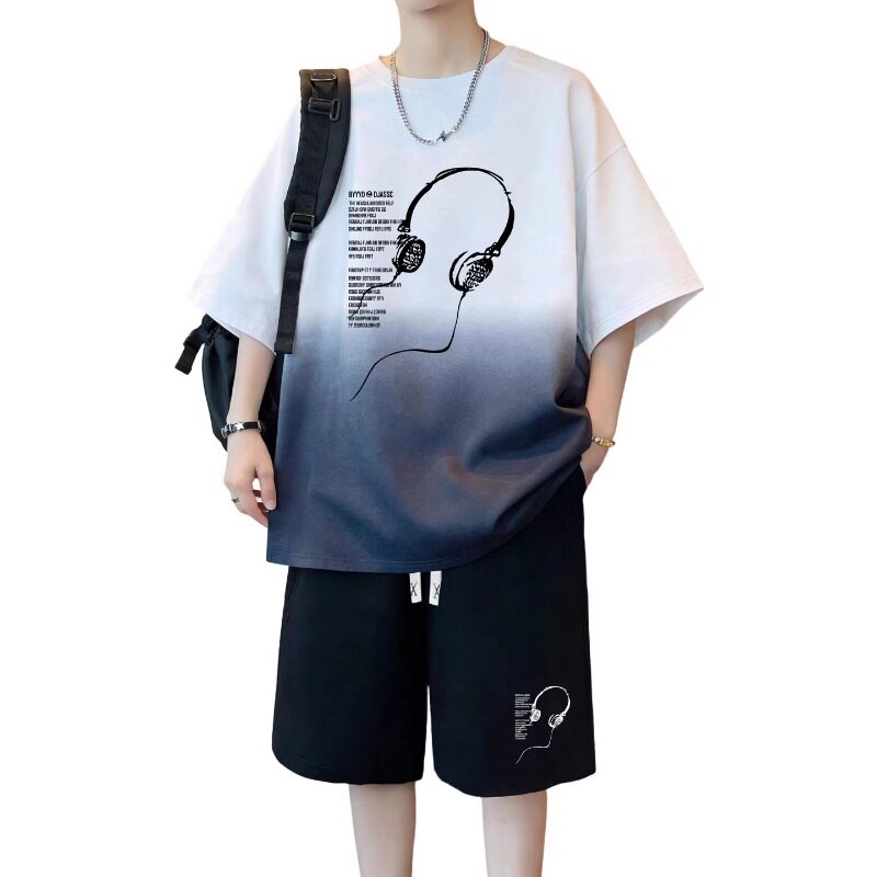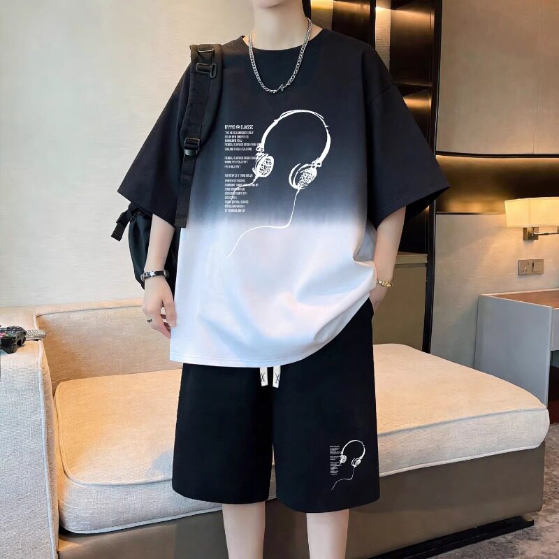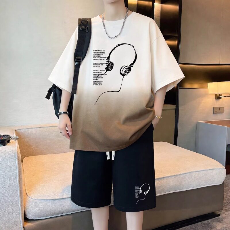 夏季纯棉短袖t恤男孩初高中学生潮牌帅气青少年大童短裤运动套装