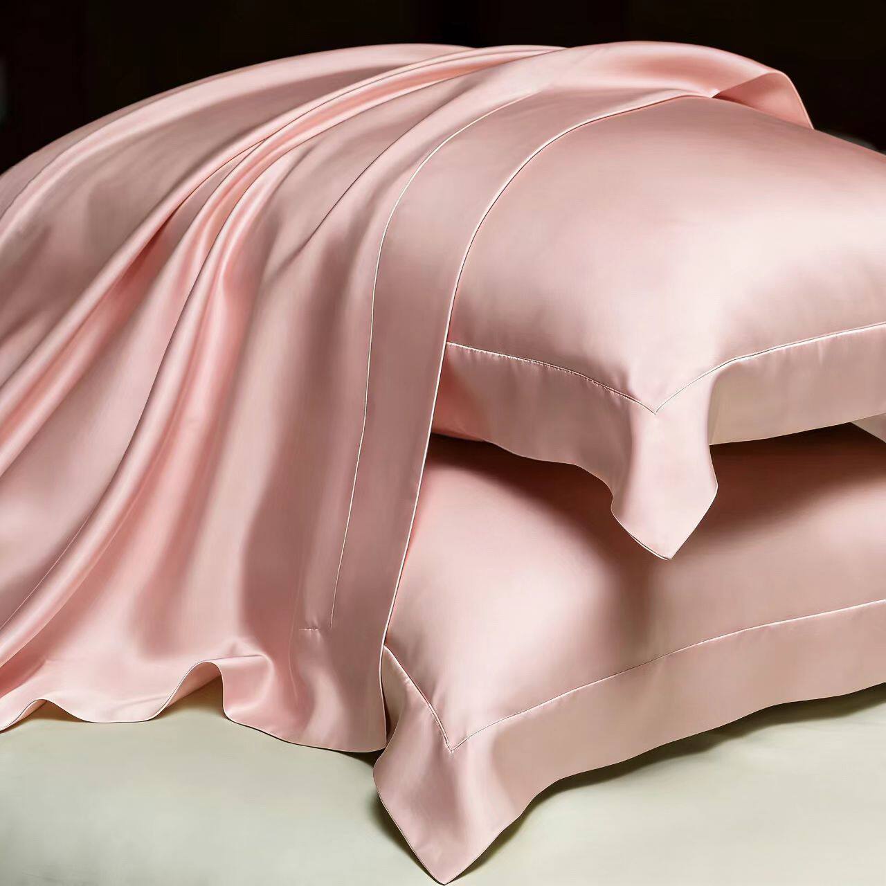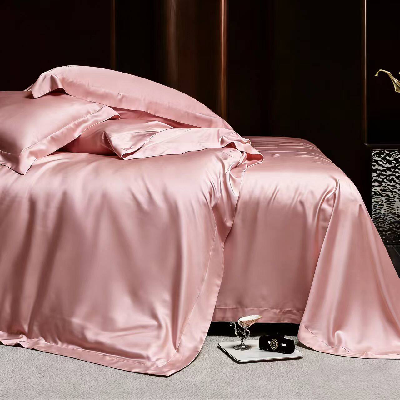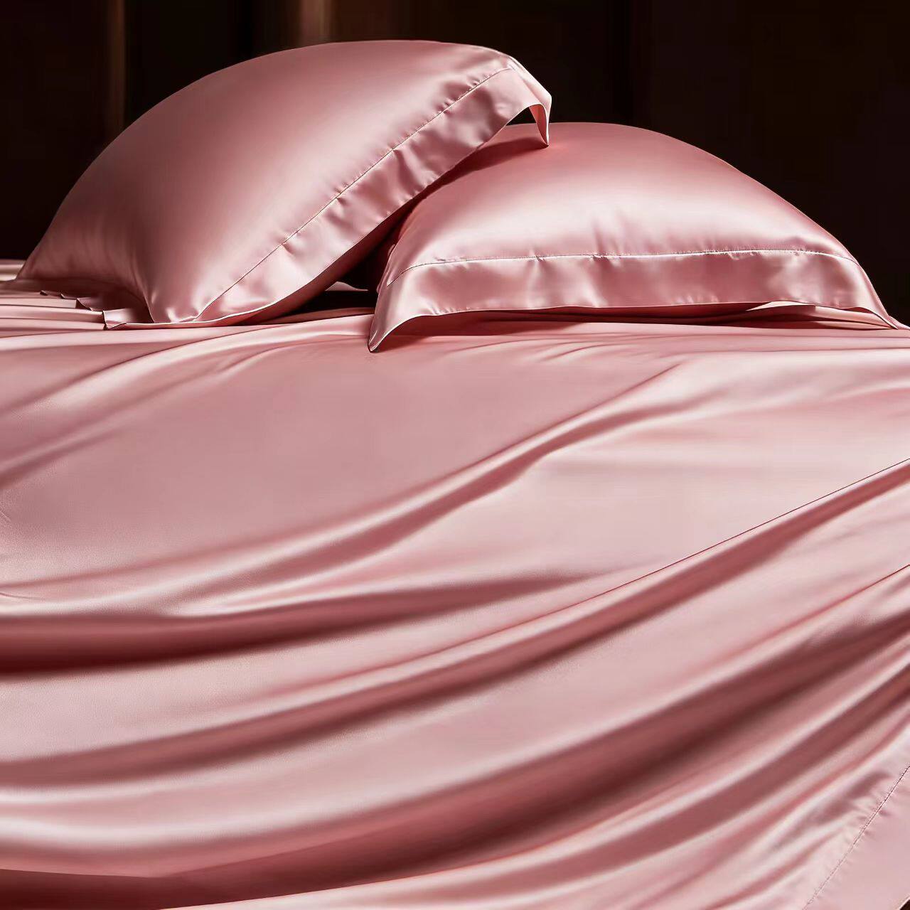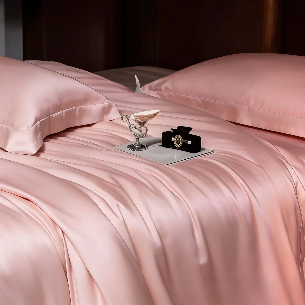 定制夏季重磅丝绸四件套粉色冰丝被套亲肤凉感纤维床笠款床上用品