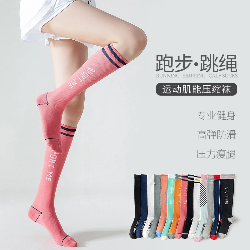 运动肌能压缩袜子女跳绳专用压力小腿专业跑步马拉松瘦腿长筒套