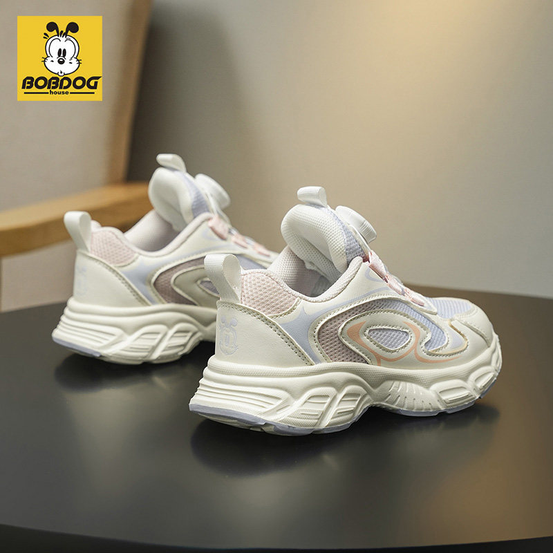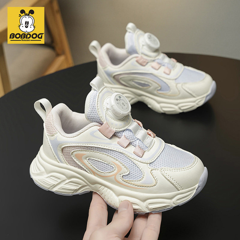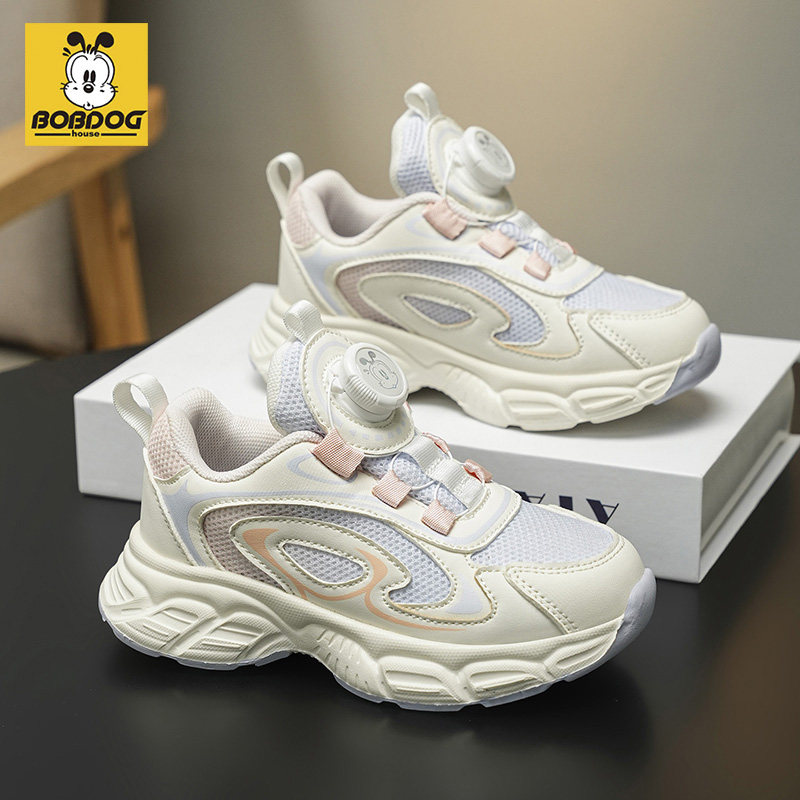 巴布豆女童运动鞋2026春秋新款网面透气旋转纽扣轻便减震跑步鞋子