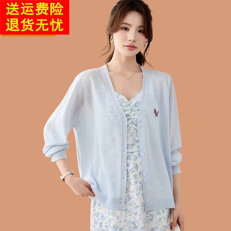 夏季防晒衣女款2026新款冰丝针织开衫配吊带裙子短款披肩外搭上衣