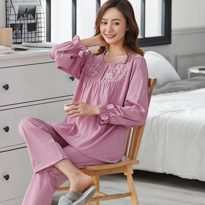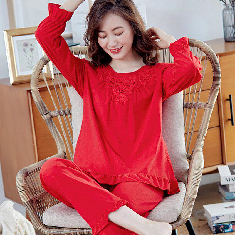睡衣女士春秋季纯棉长袖长裤红色本命年冬天加厚小个子家居服套装