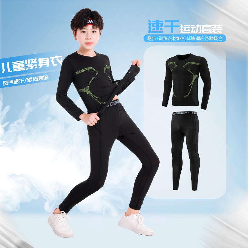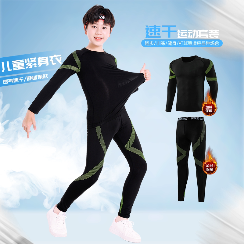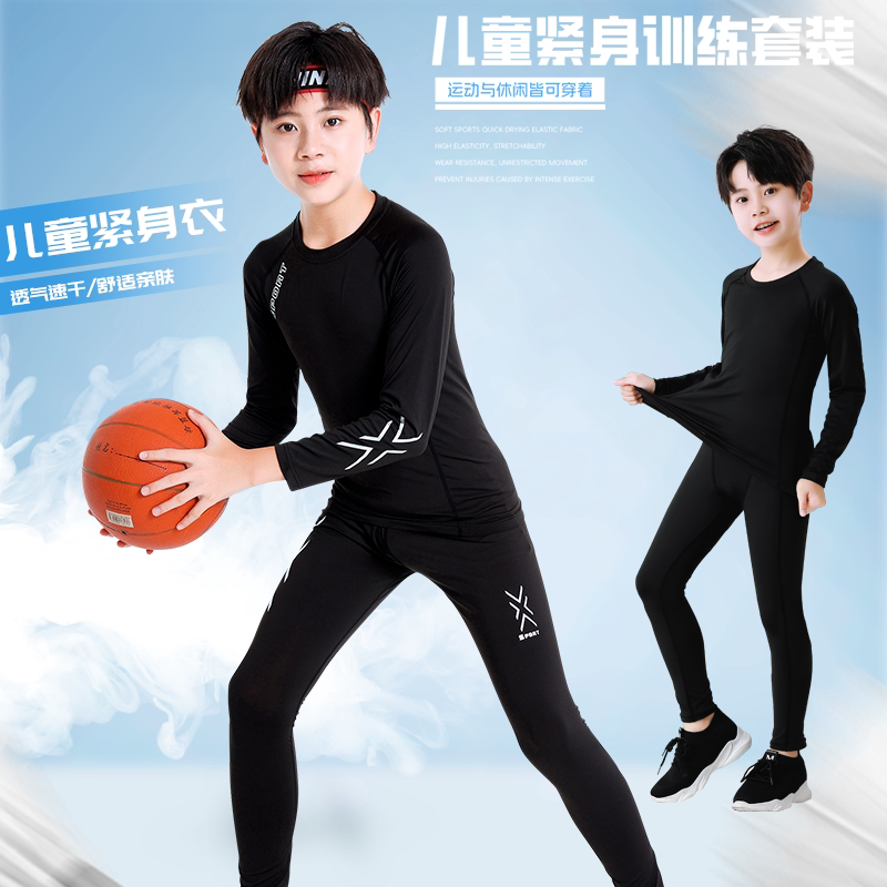 秋冬儿童紧身衣长袖训练服套装篮球服足球打底衣男童运动健身服女
