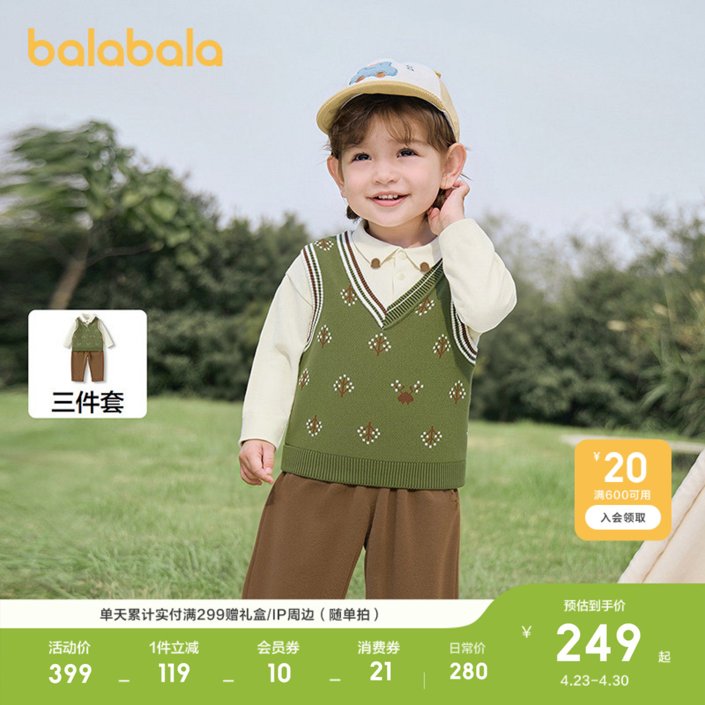 巴拉巴拉童装宝宝套装女童三件套2026休闲秋冬装儿童萌趣礼物保暖