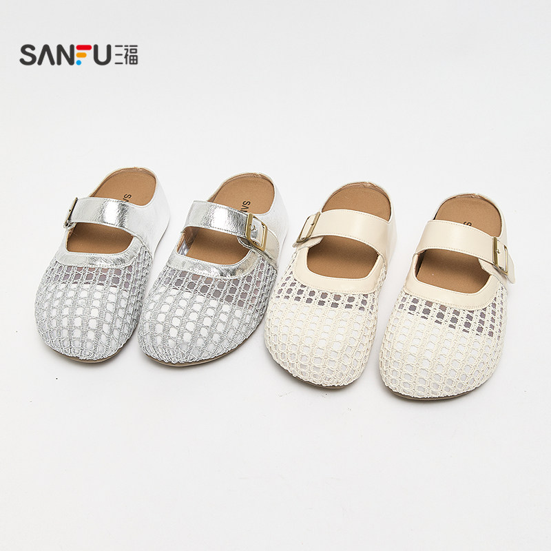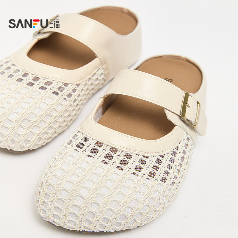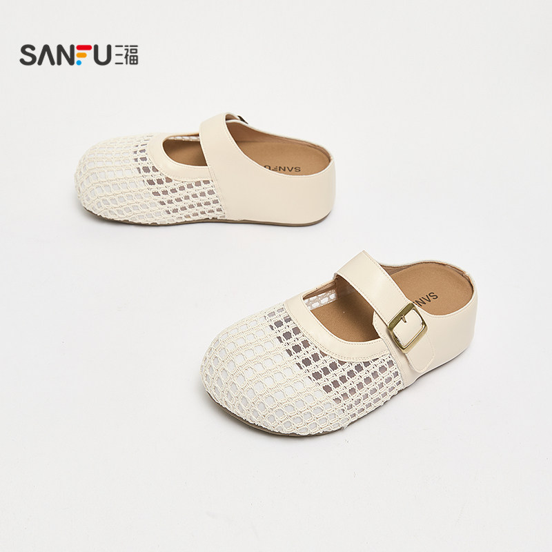 三福女凉拖鞋夏季简约透气网面半拖包头内增高厚底女鞋855319