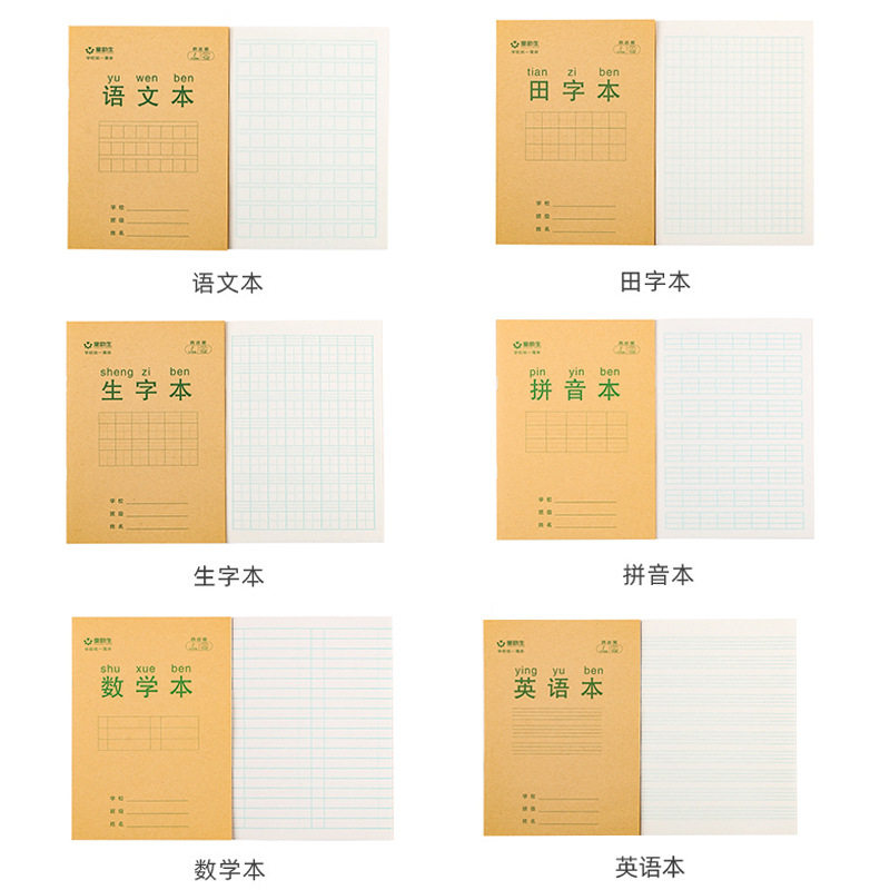 小学生作业本牛皮纸1-3年级数学拼音生字田字格本儿童练字本
