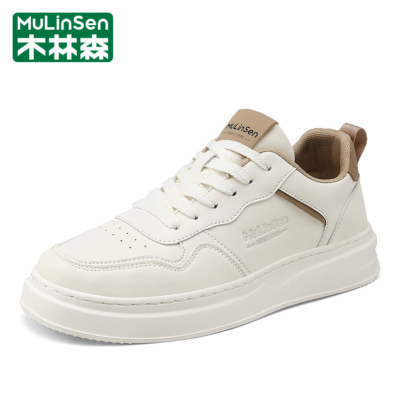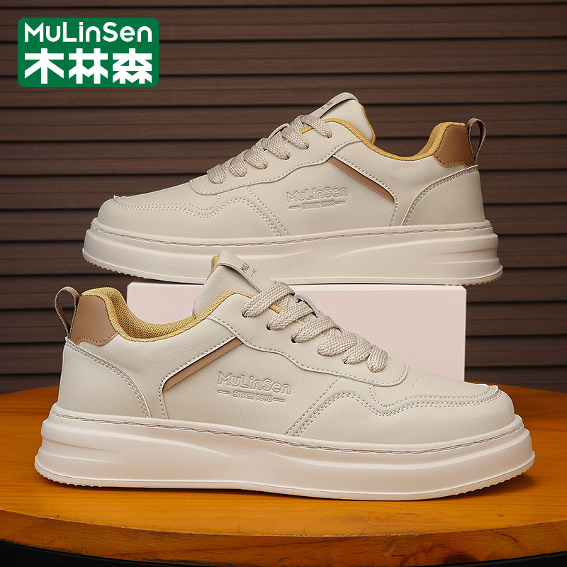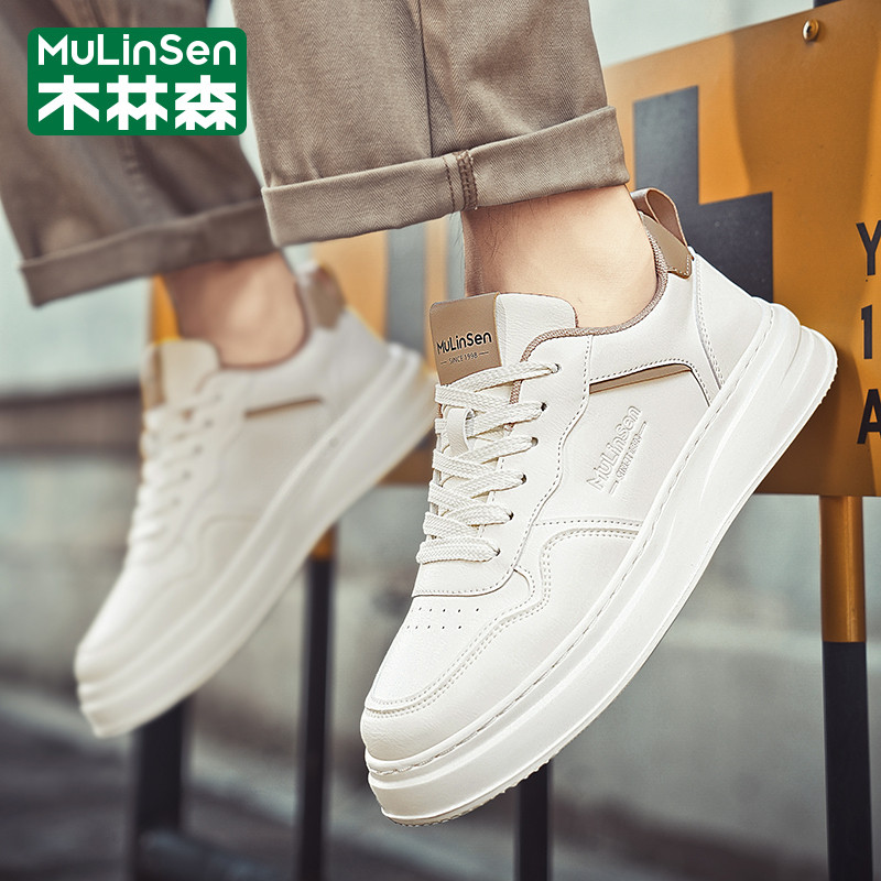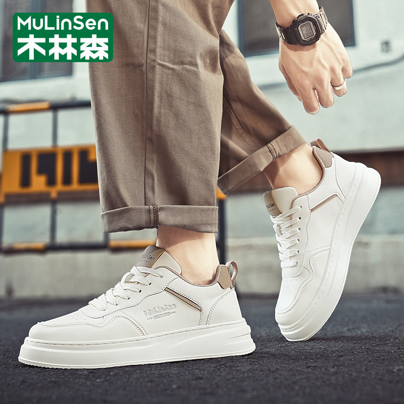 木林森男鞋春季2026新款运动休闲板鞋厚底青少年皮面小白工作潮鞋