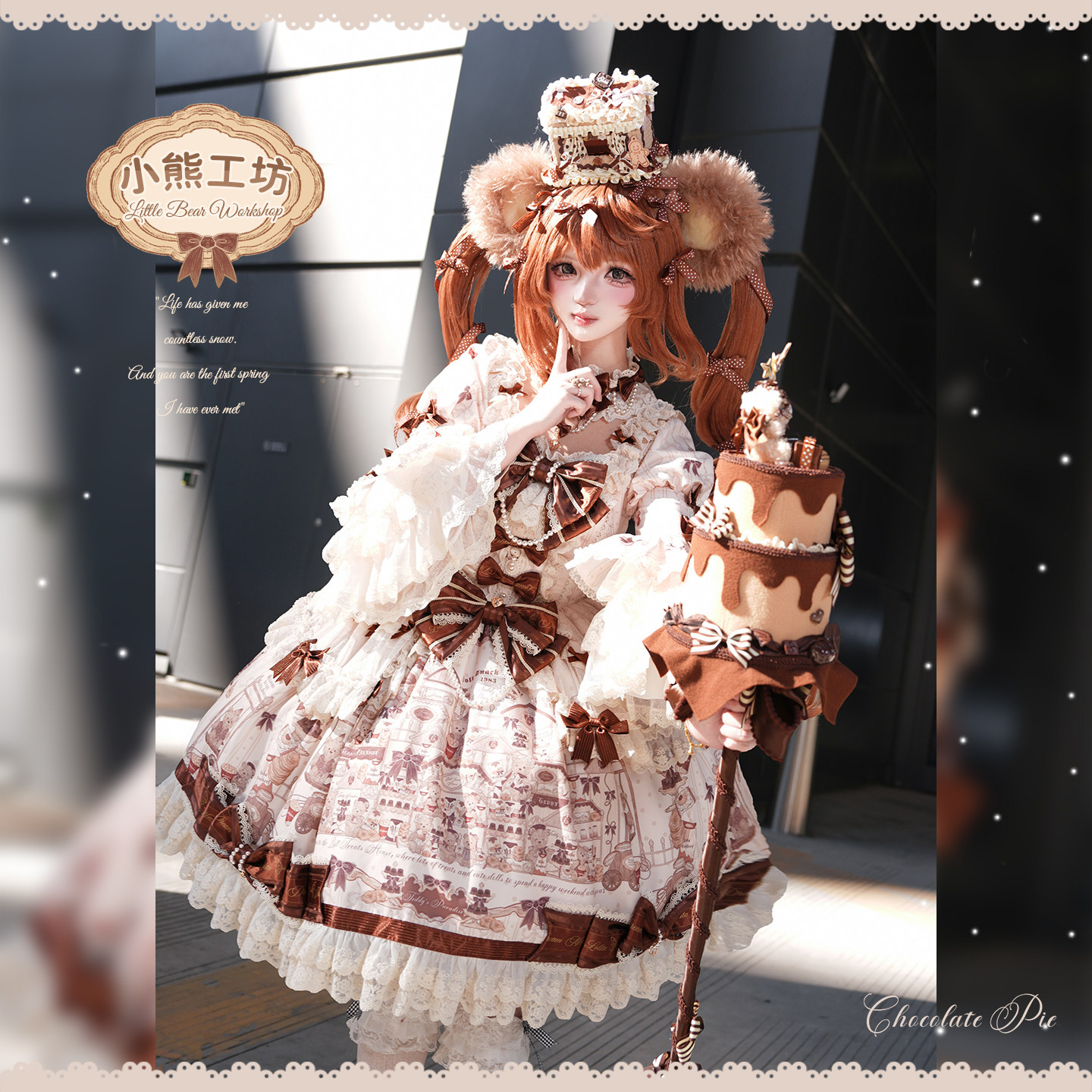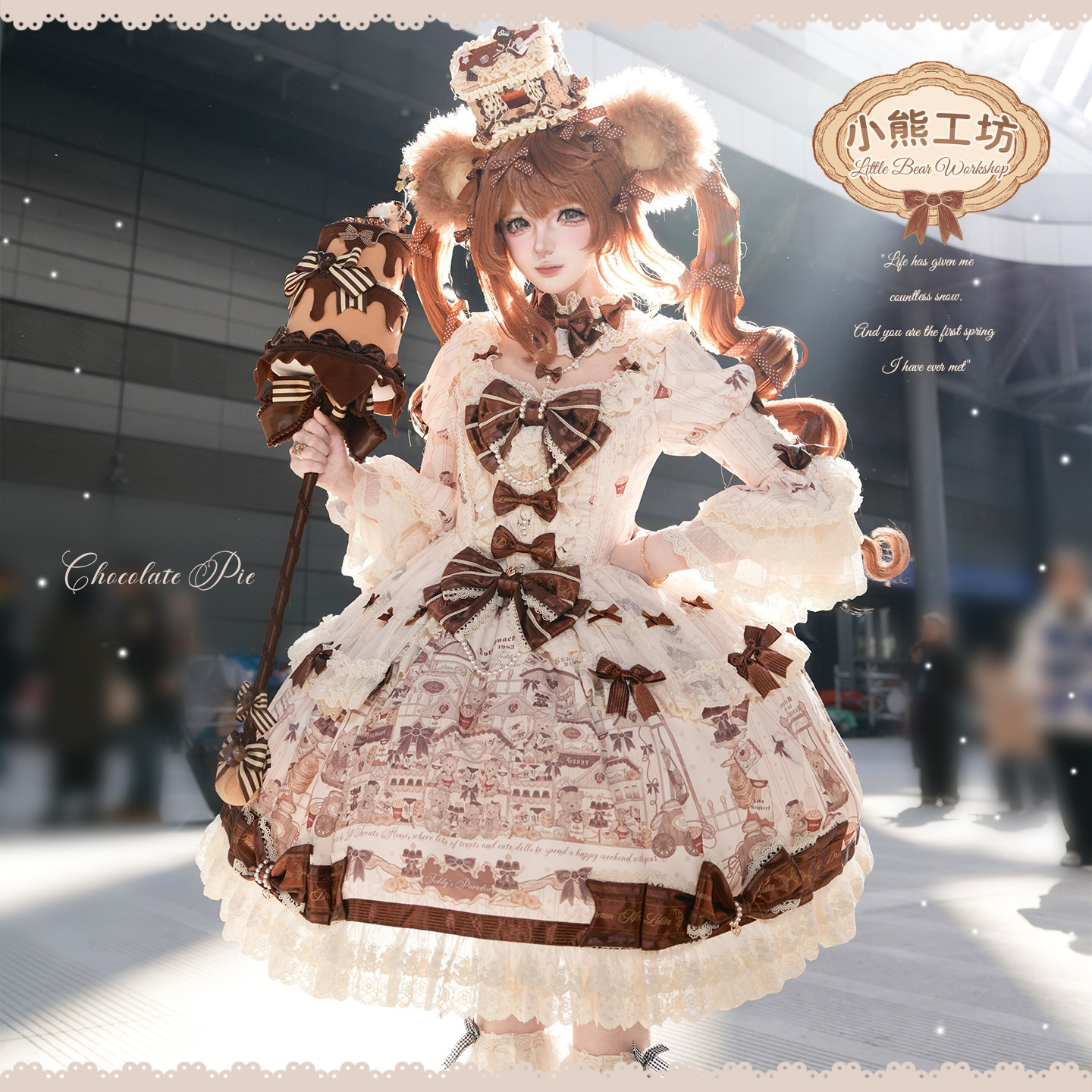尾款【小熊工坊】巧克力小熊柄图甜系dress型Lolita连衣裙