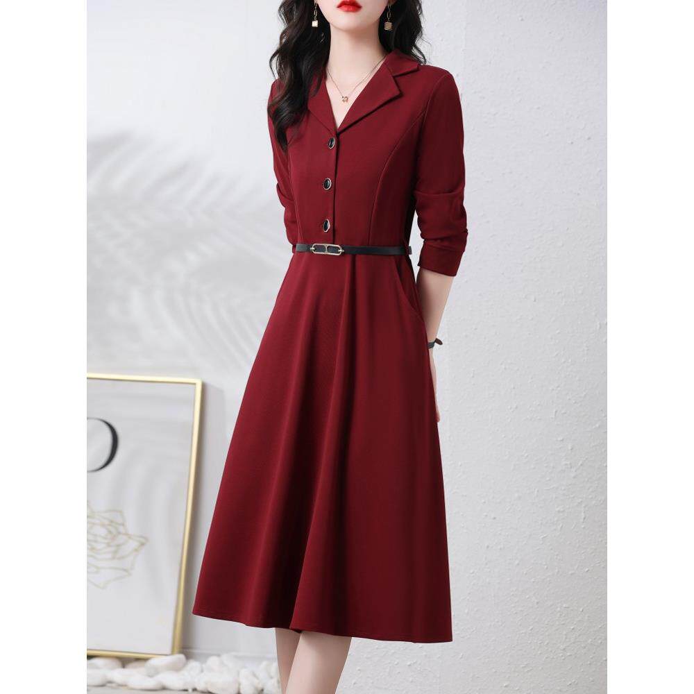红色连衣裙女2025春秋季新款韩版修身显瘦轻奢长袖洋气高级感裙子
