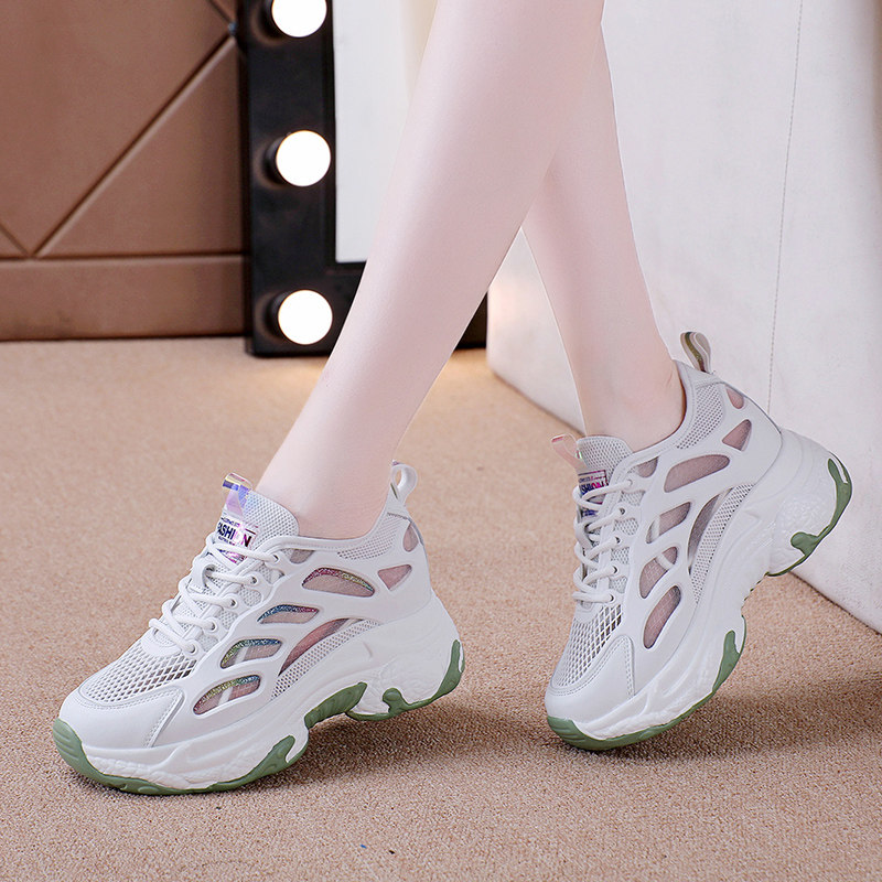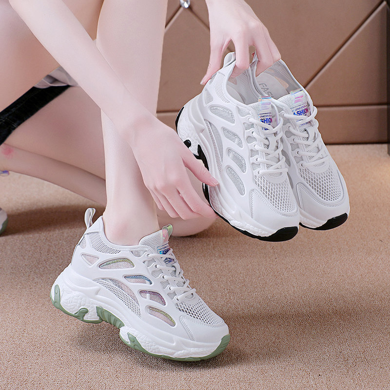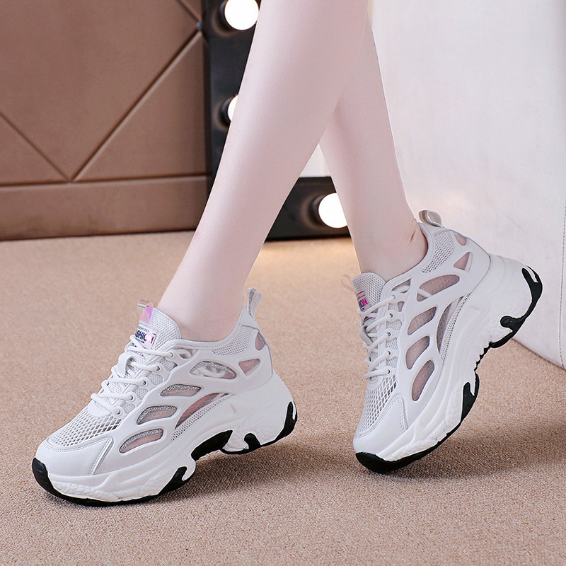 内增高小白鞋女2026新款夏季老爹鞋女薄款透气厚底运动休闲鞋子潮