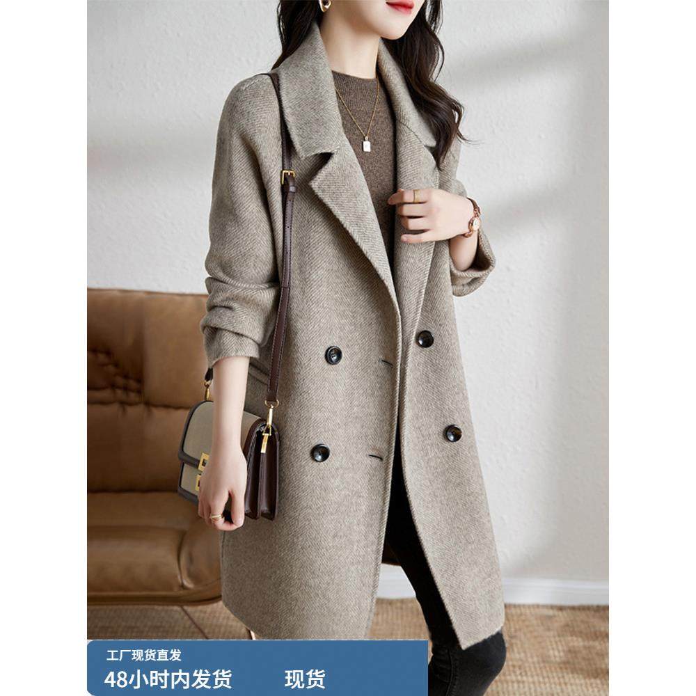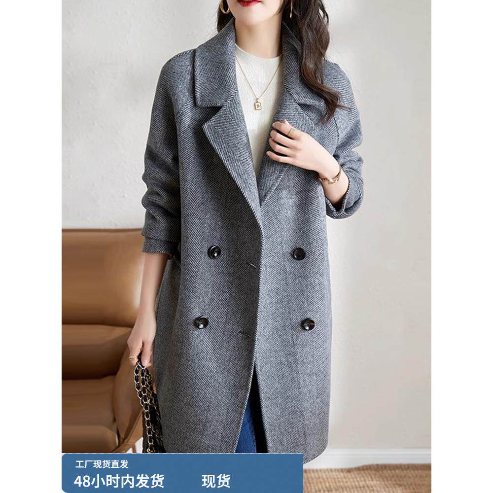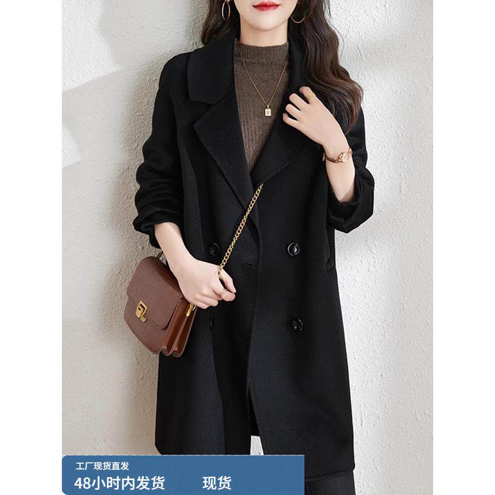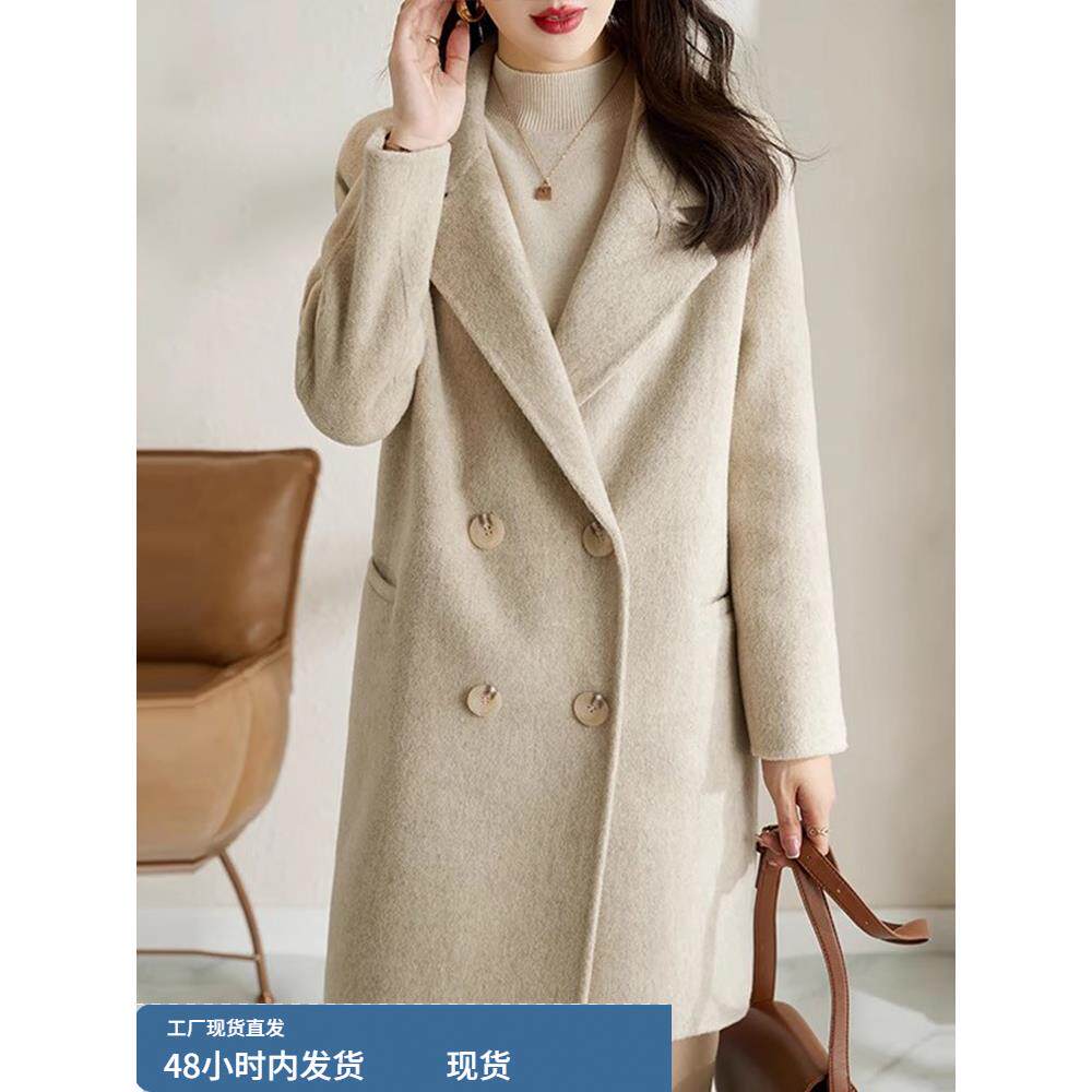 毛呢西装外套女款2025新款爆款高级感冬季夹棉加厚中长款呢子大衣