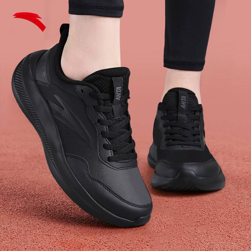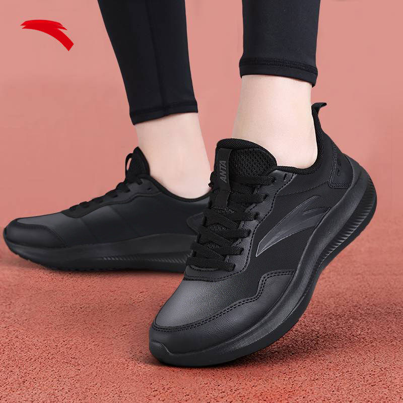 安踏黑色运动鞋女鞋2026夏季新款官方正品皮面软底跑步鞋子女款