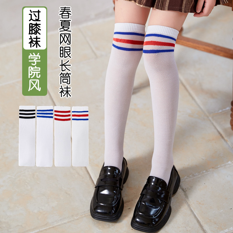 儿童长筒袜夏季薄款透气男童女童学院风学生网眼过膝盖高筒足球袜