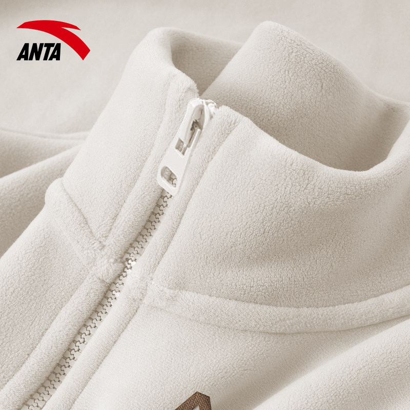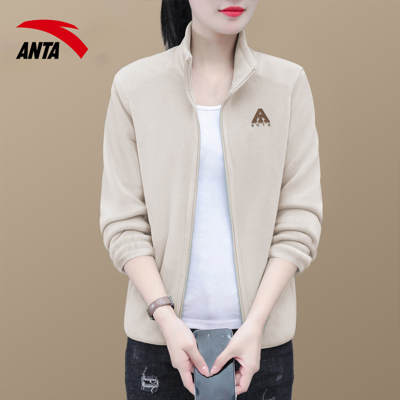 安踏外套女款2026新款官方正品抓绒运动上衣春季款休闲保暖开衫女