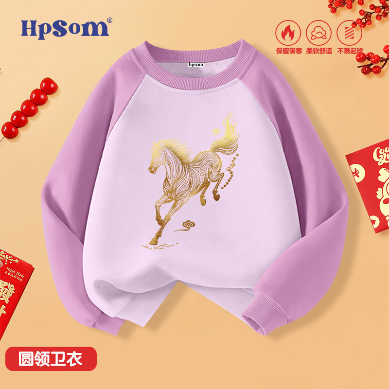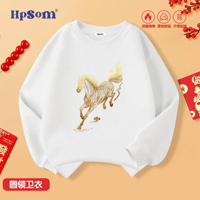 马年红色儿童圆领卫衣2026新款秋冬季男女孩中大童装加绒加厚外套