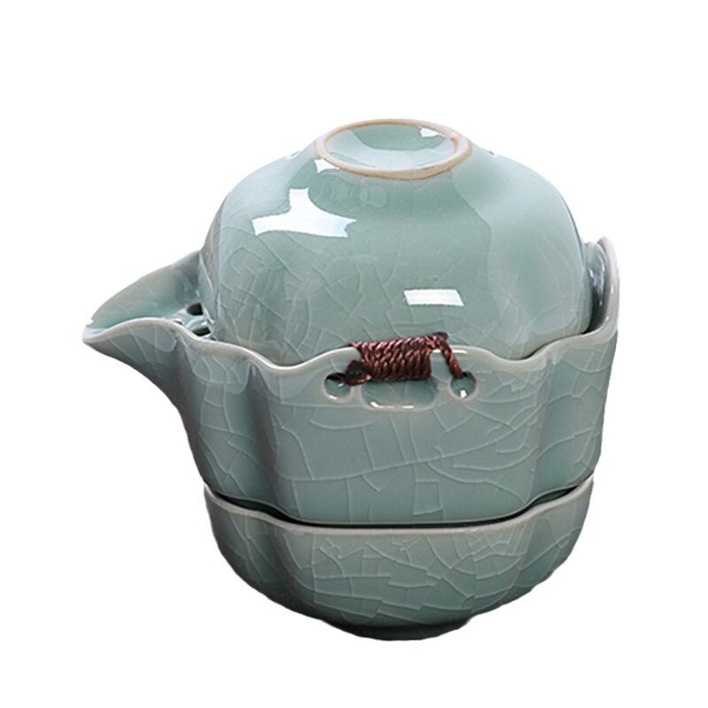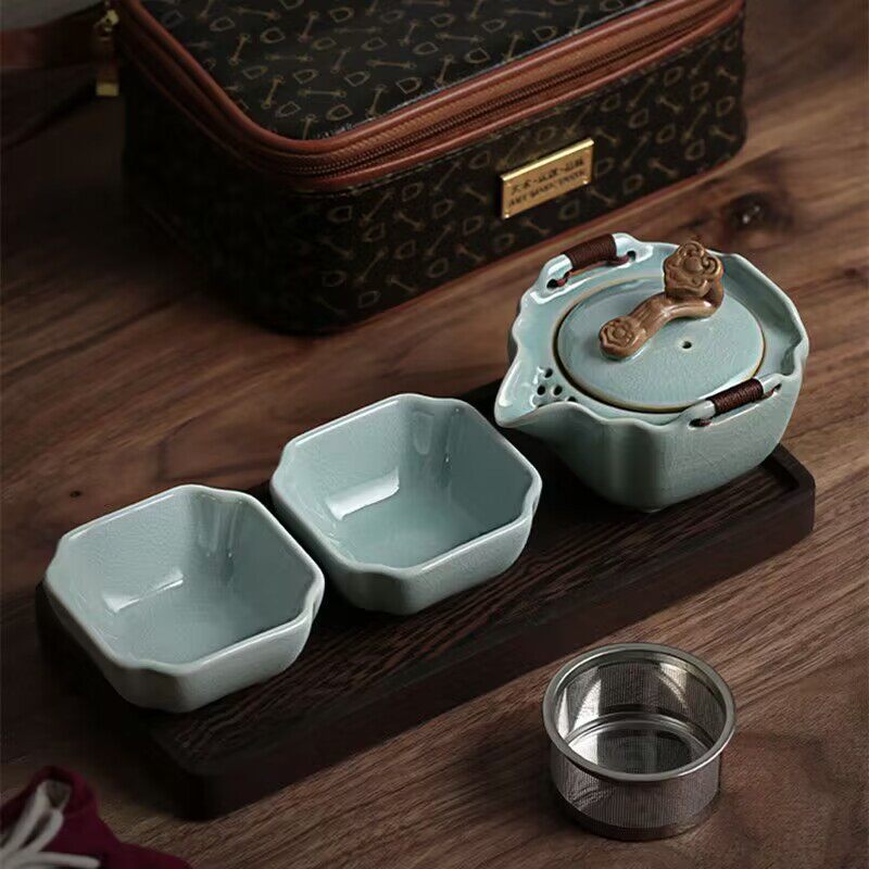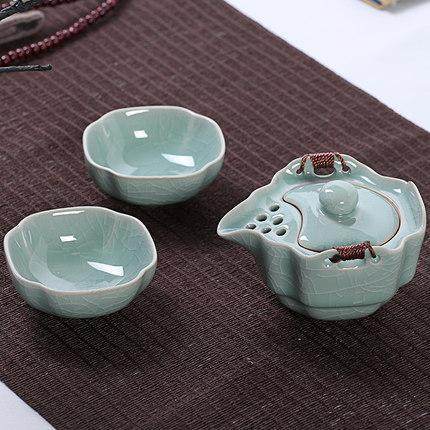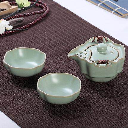 正品汝窑一壶两杯开片可养办公旅行茶具便携式快客杯功夫陶瓷套装