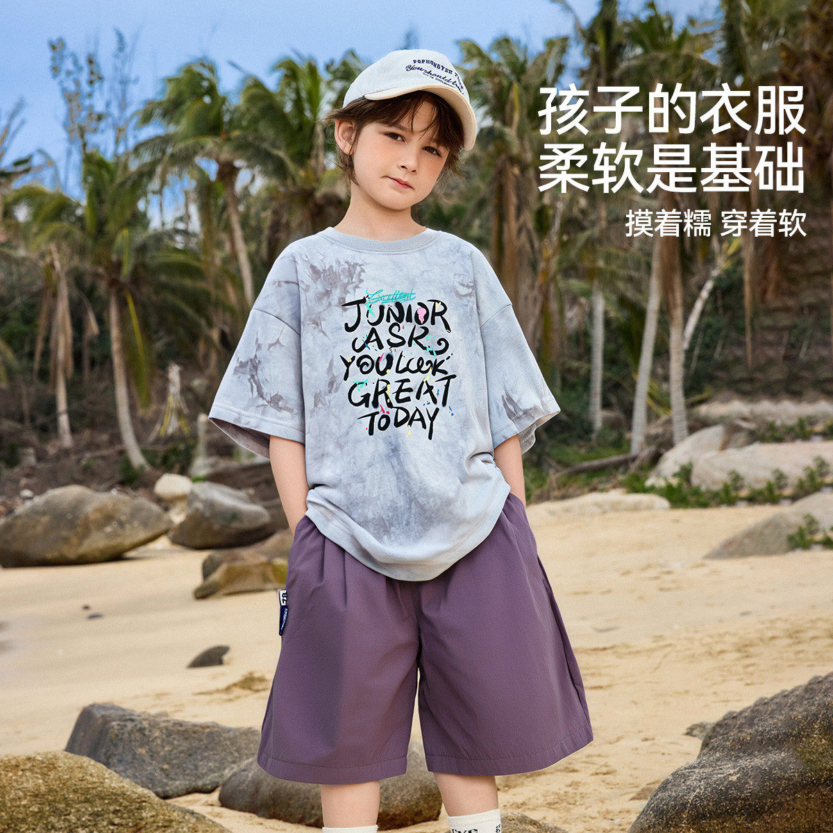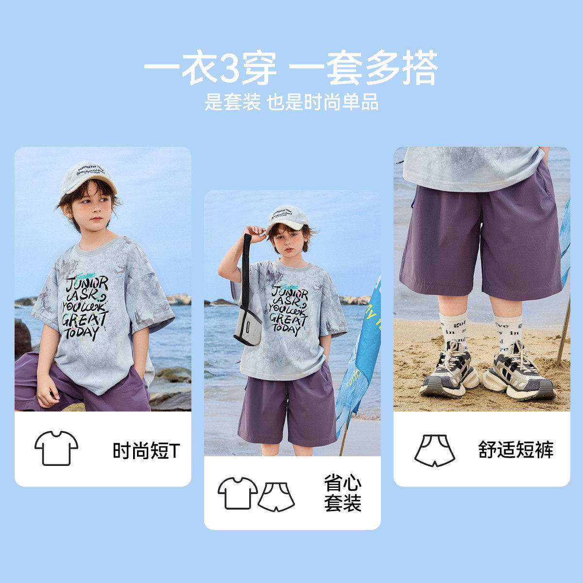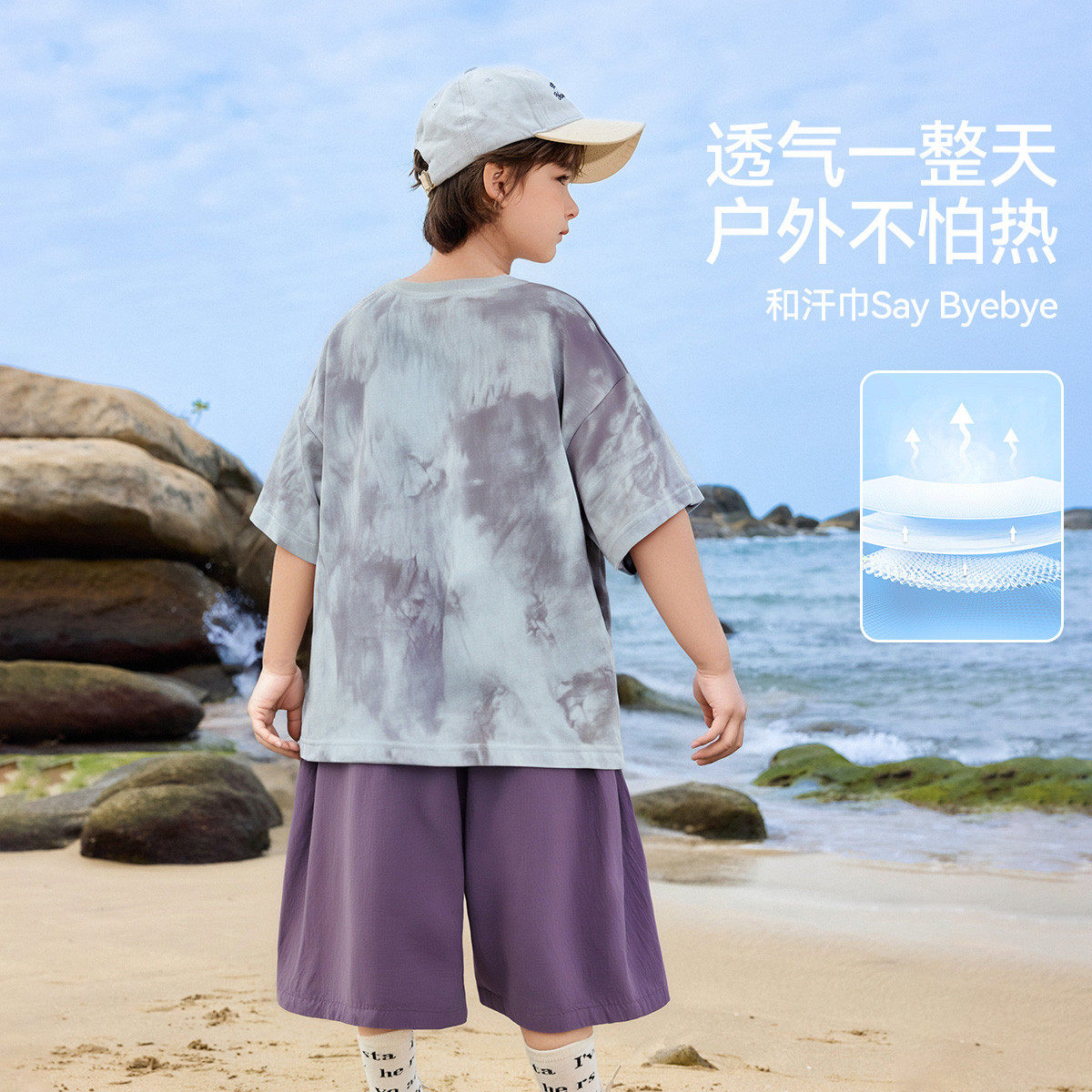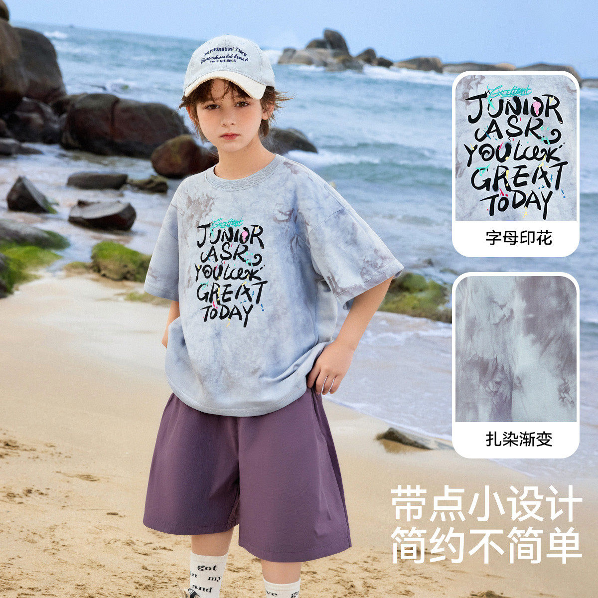 ask儿童套装2026夏季新款男童扎染渐变短袖T恤运动透气短裤两件装