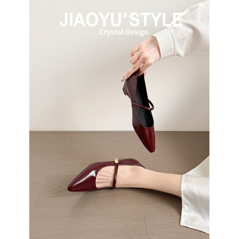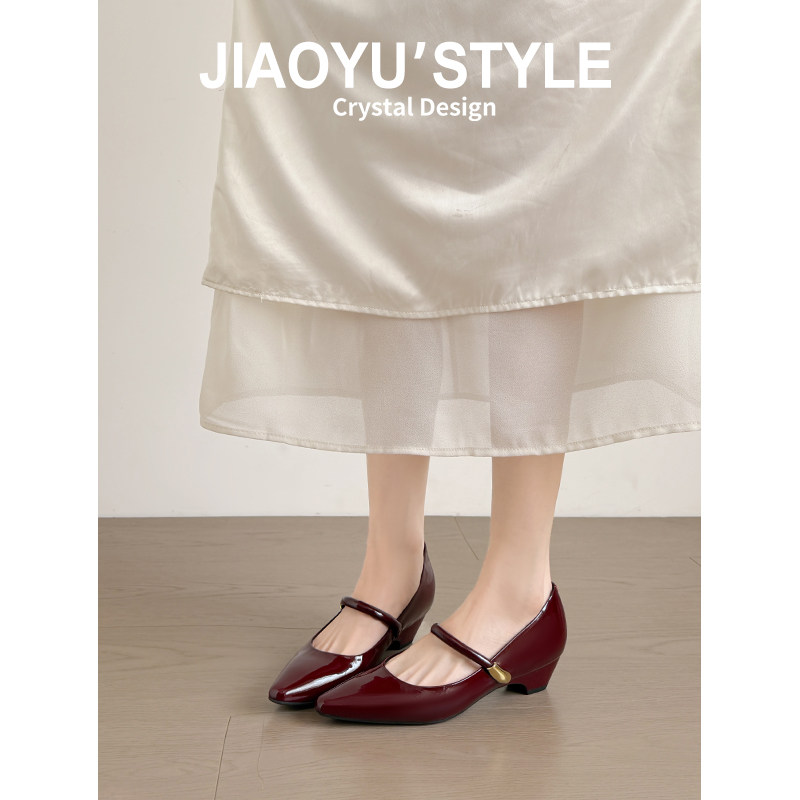 真皮~骄屿法式尖头高跟鞋女2026新款内增高玛丽珍鞋通勤浅口单鞋