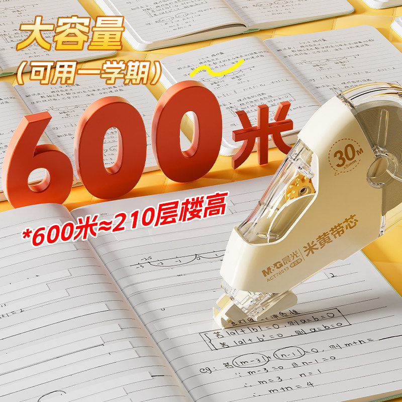 晨光双壳米黄护眼色耐摔修正带小学生专用改正带隐形涂改带高颜值大容量顺滑静音原纸色无痕去字涂改带实惠装
