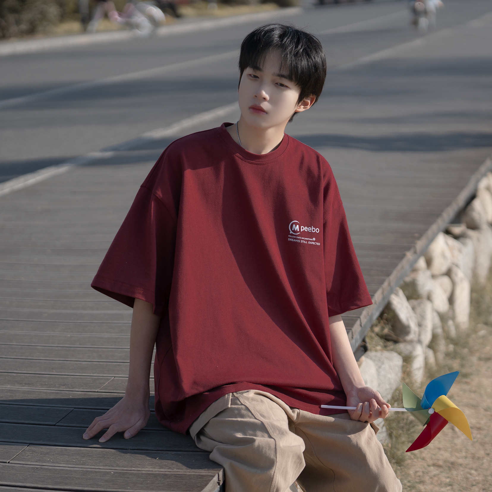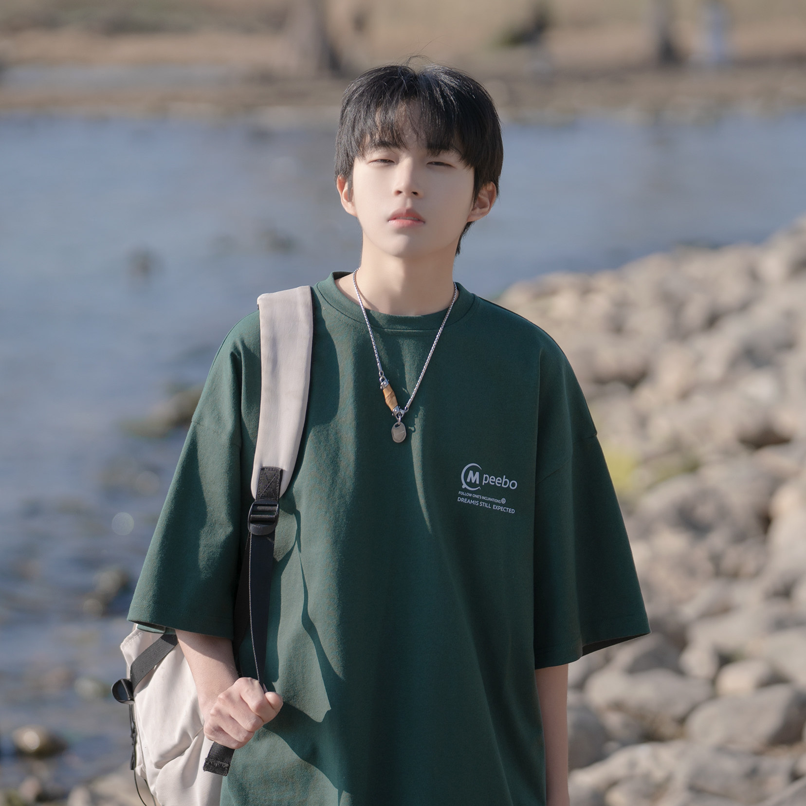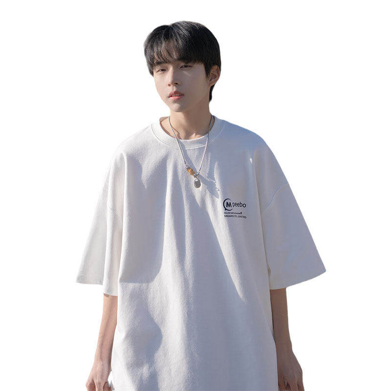 白色男生士纯棉短袖T恤夏季加肥加大宽松重磅半袖大码美式青少年