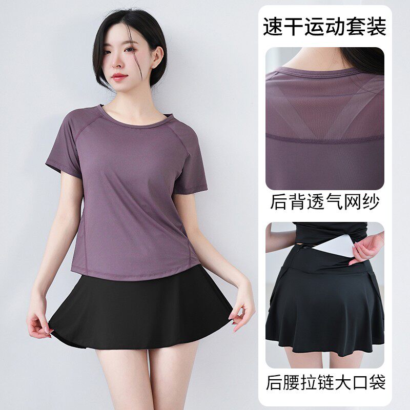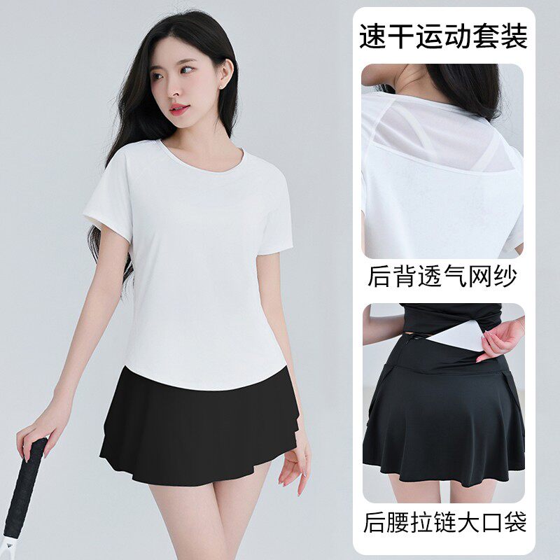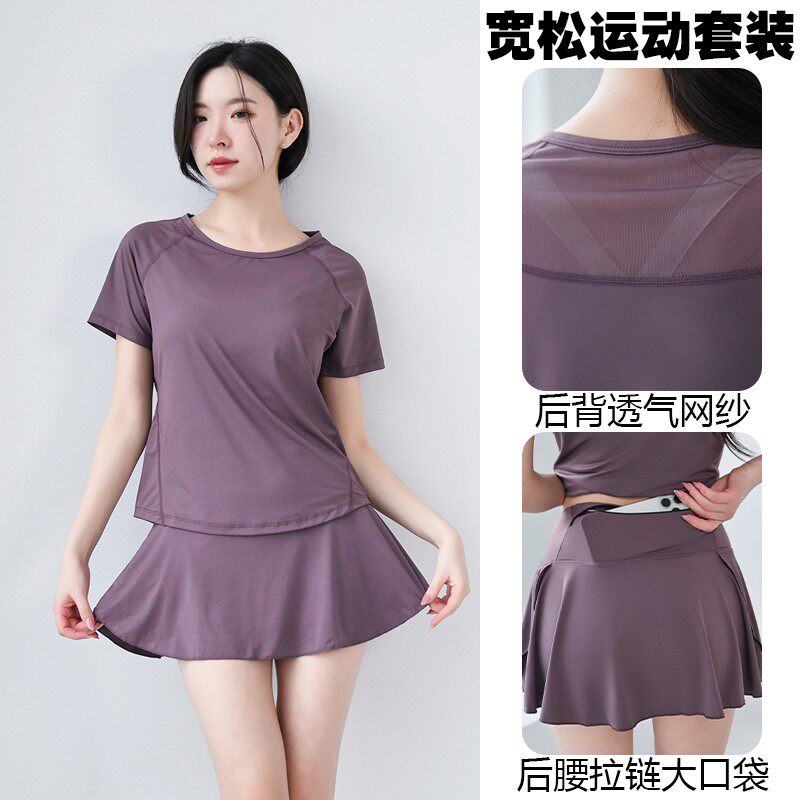 显瘦夏季瑜伽服套装运动健身女跑步训练宽松透气休闲速干网球套装