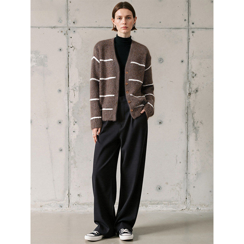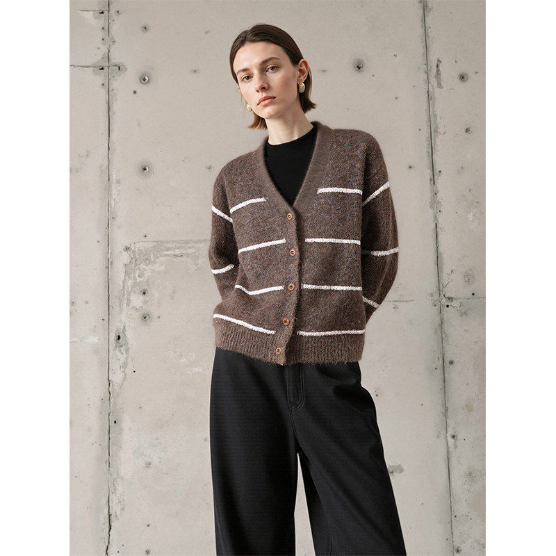 Basic House/百家好撞色条纹V领针织开衫女2026春季新款毛衣外套