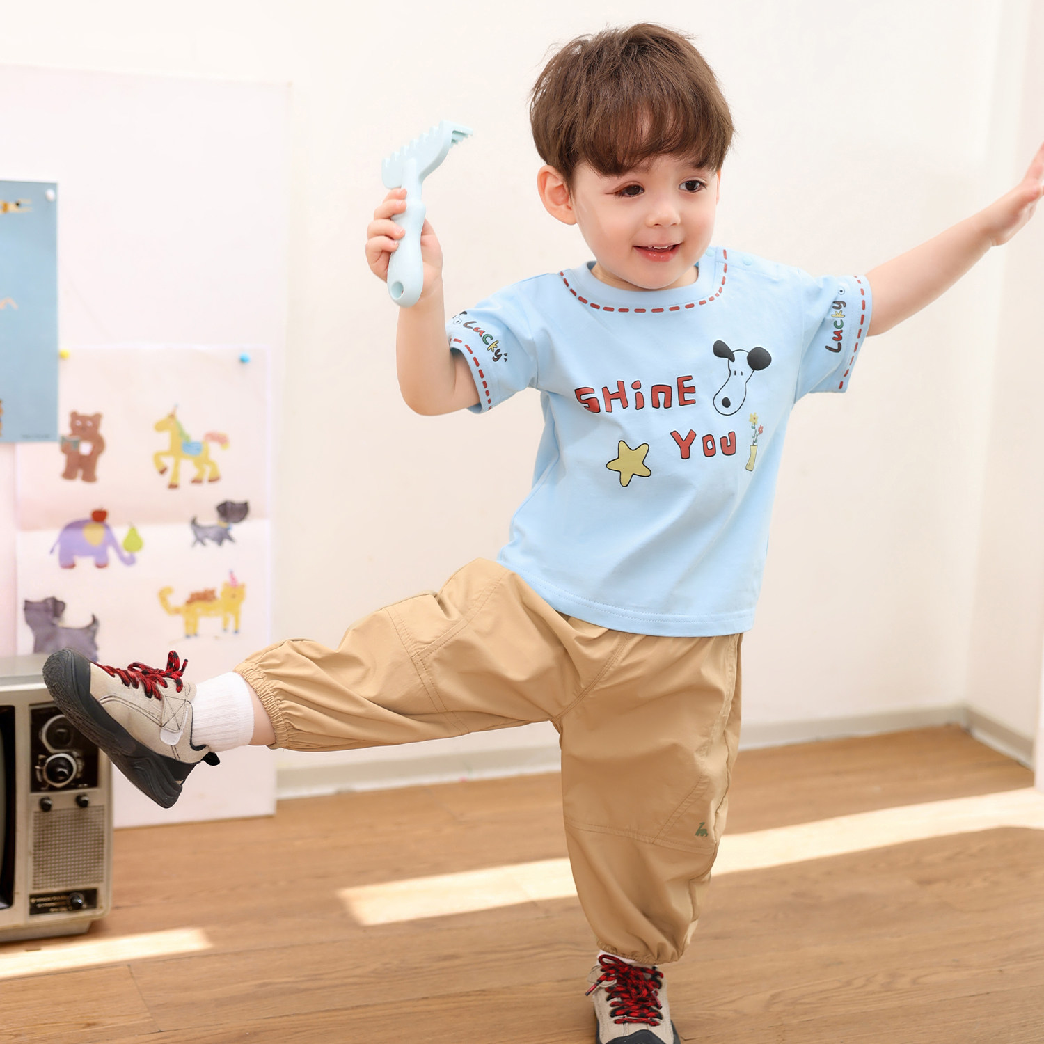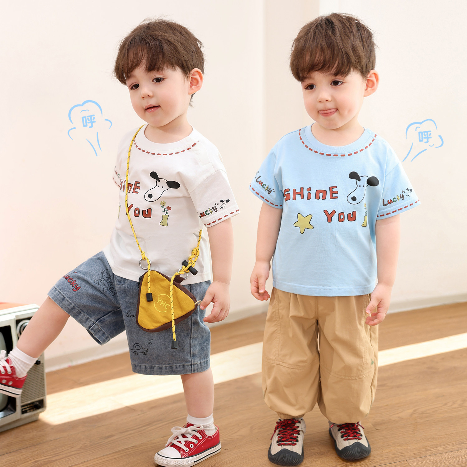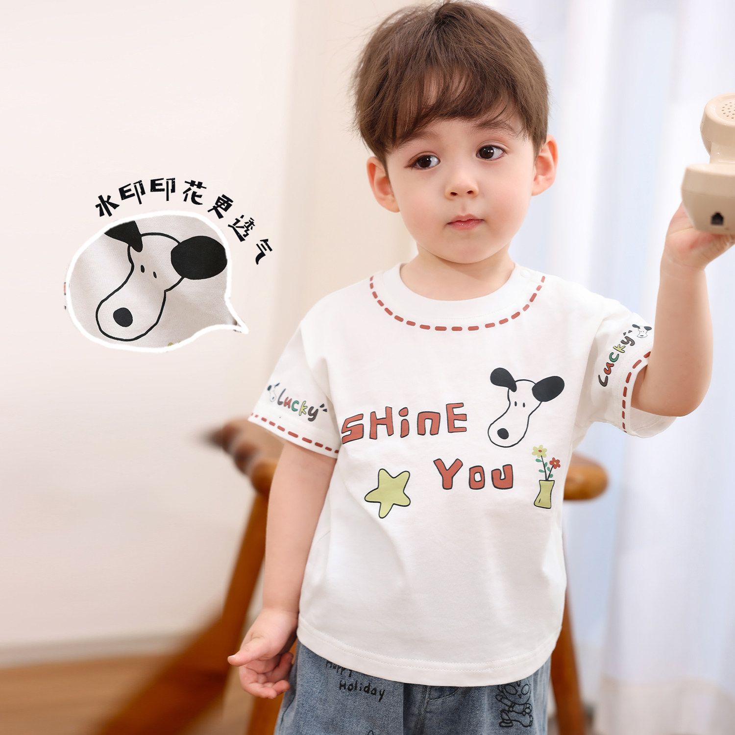 小O爸男婴童 宝宝短袖t恤纯棉夏季2026新款婴儿白色小狗上衣