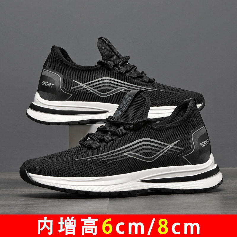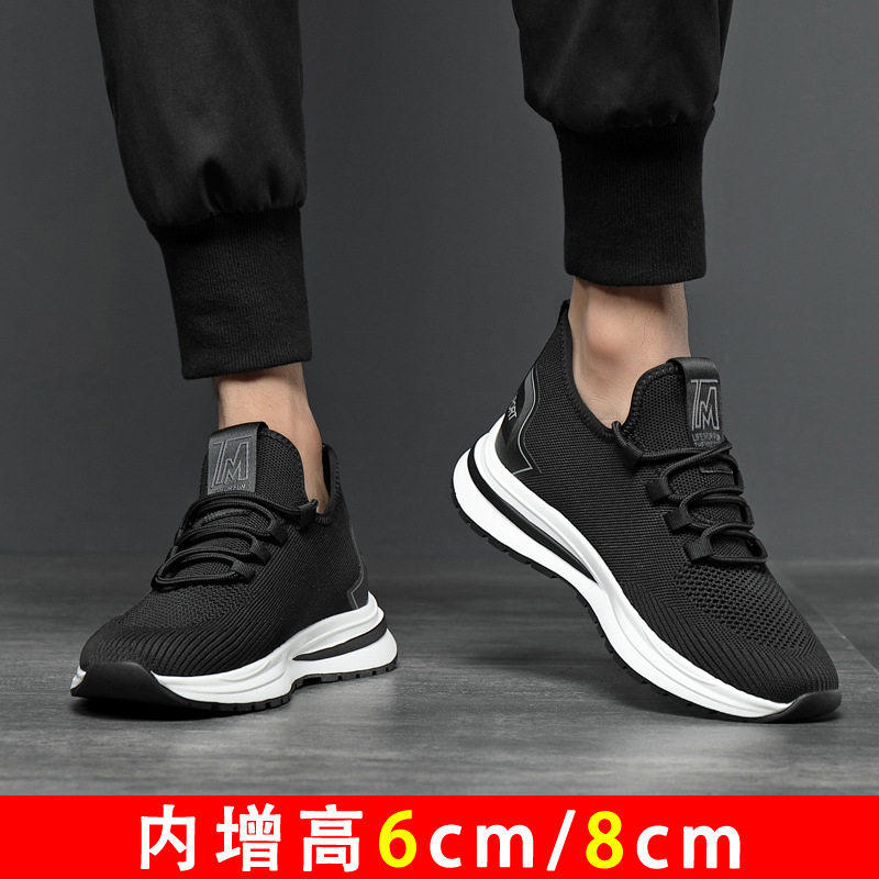夏天内增高6厘米飞织远动男鞋针织曾高鞋8公分网面高跟休闲运动鞋