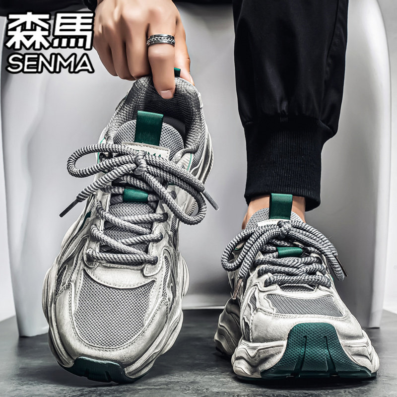 森马男鞋2026新款夏季网面透气休闲运动跑步男士厚底增高老爹潮鞋