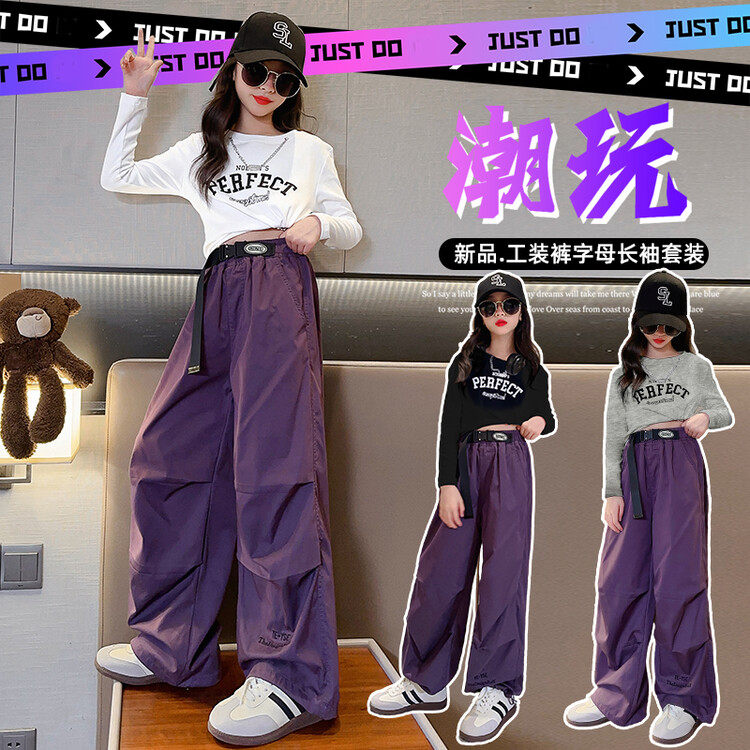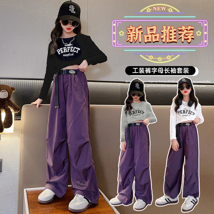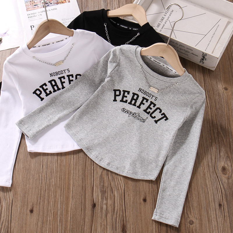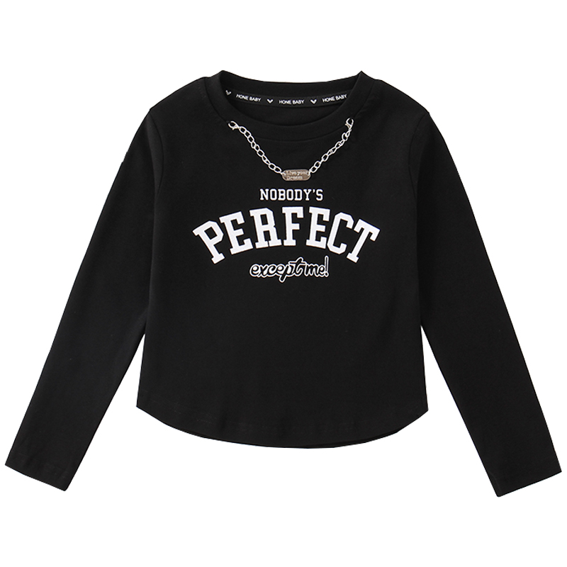 女童长袖t恤春秋款纯棉高腰黑白色打底衫炸街中大童网红短款上衣