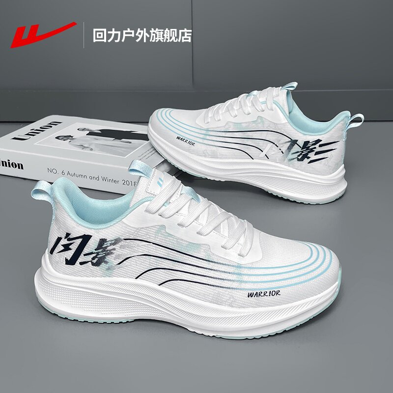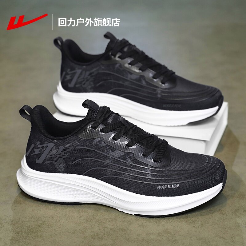 311线报网描述:回力运动鞋男青少年黑色轻便网面透气跑步鞋