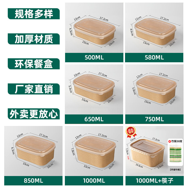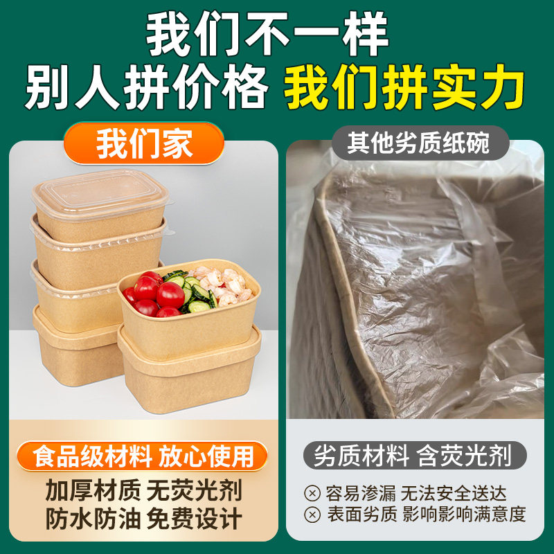 一次性餐盒牛皮纸长方形外卖快餐打包盒野餐饭盒环保便当水果盒