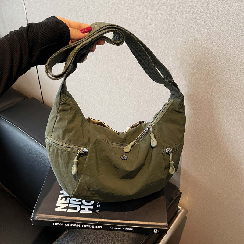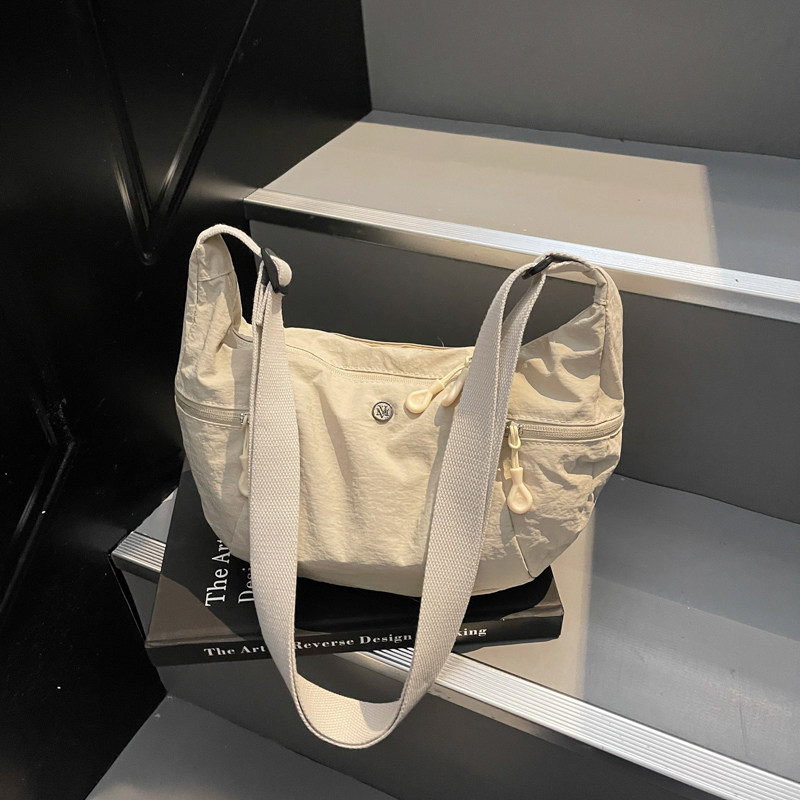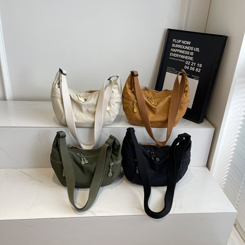 日系超轻防水布包男女百搭单肩斜挎包多功能尼龙轻便大容量牛角包
