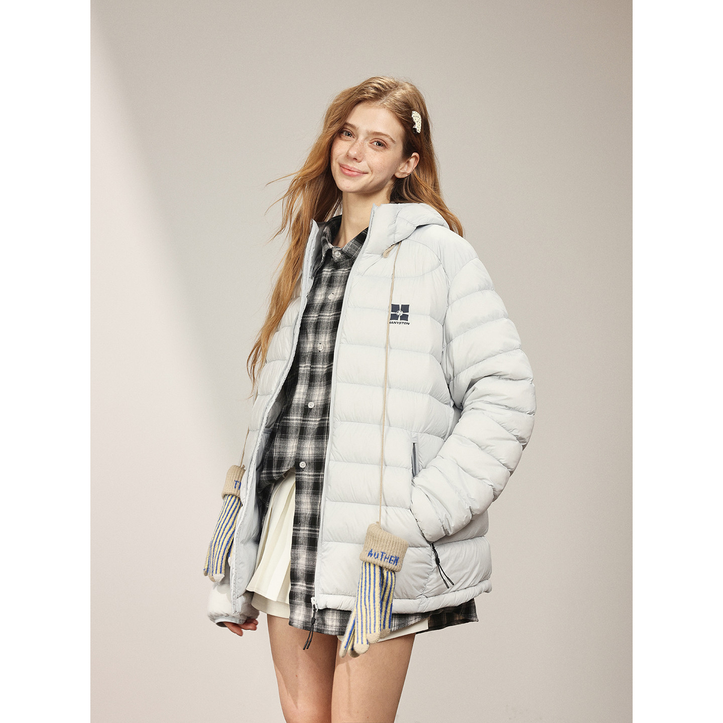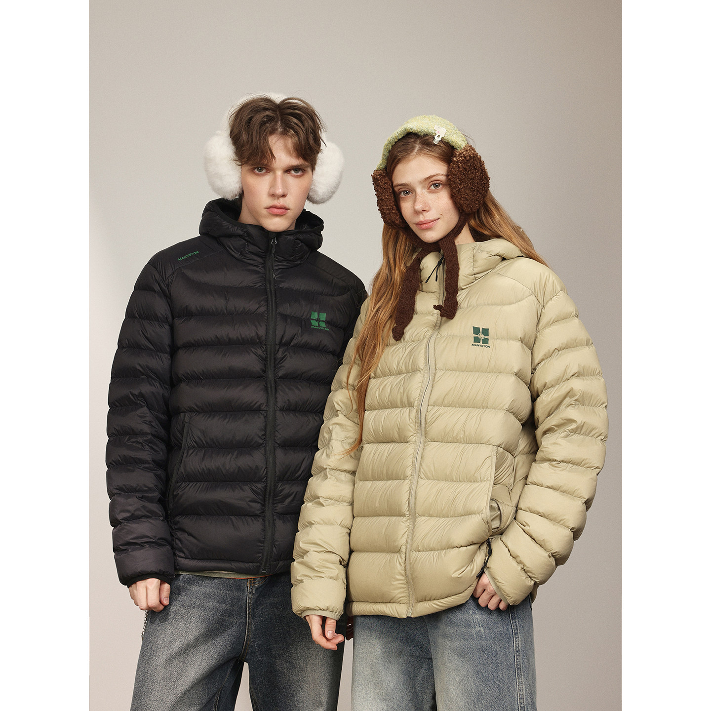 MANYSTON美式连帽轻薄排骨羽绒服男款冬季加厚保暖青少年开衫外套