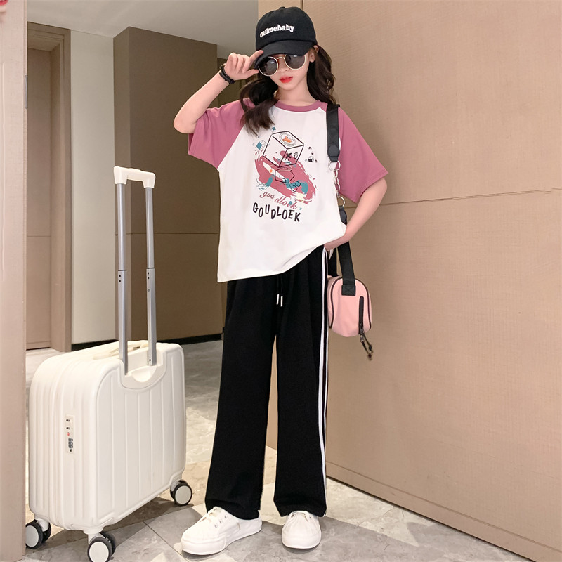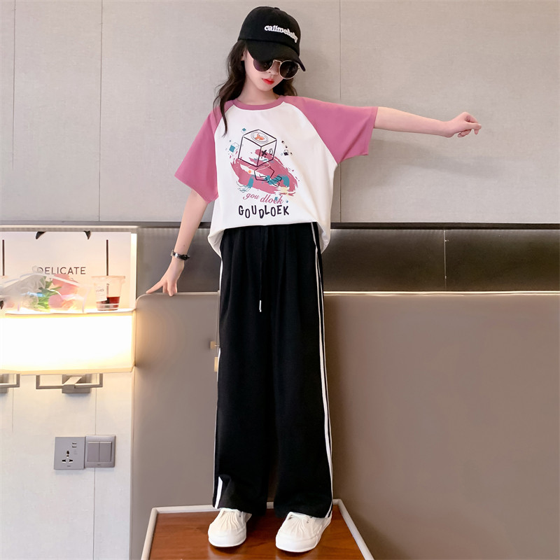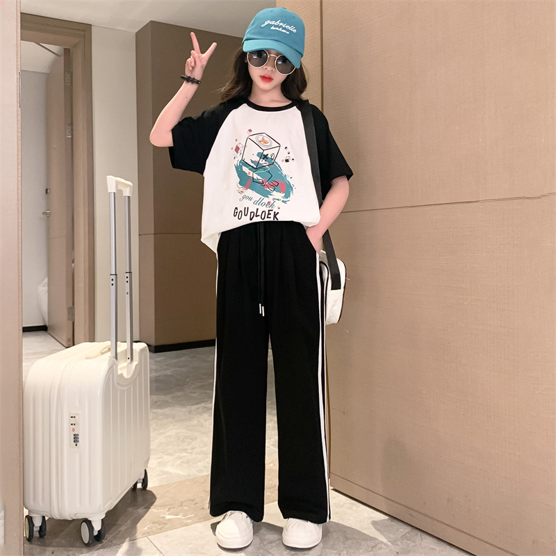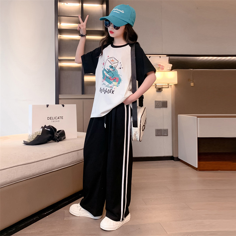 女童夏装套装2026新款儿童洋气运动短袖中大童纯棉夏季休闲两件套