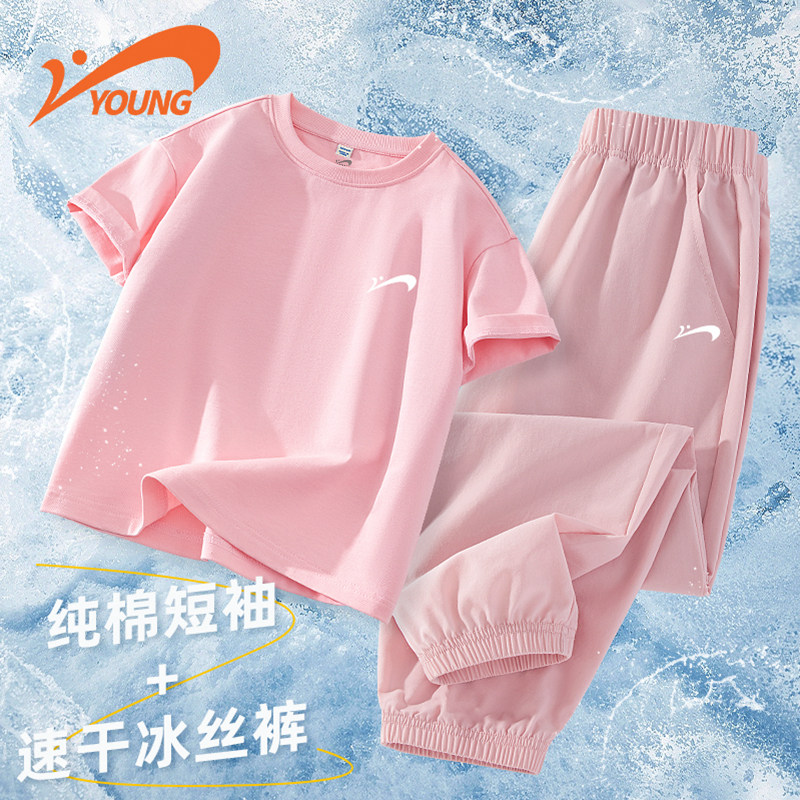 贵人鸟童装女童套装小女孩夏季新款户外运动套装儿童纯棉短袖T恤