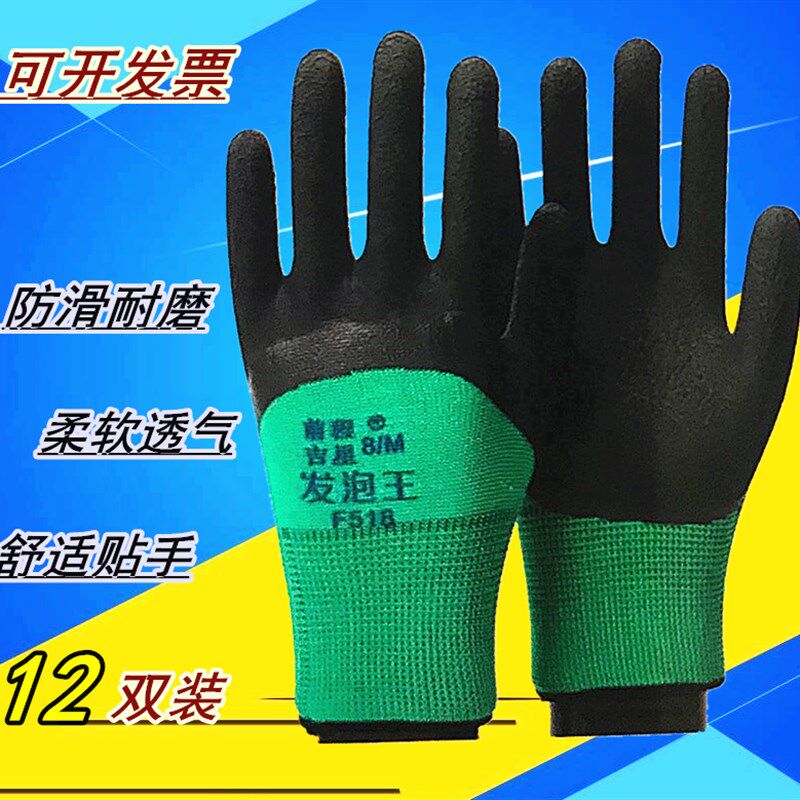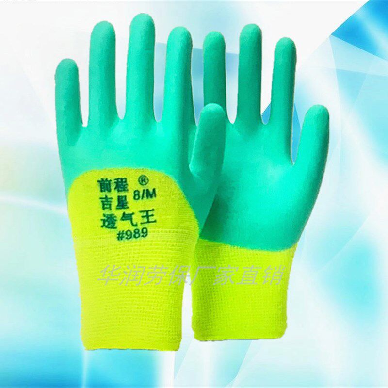 左手右手前程吉星989透气王加强指乳胶发泡手套浸胶防滑耐磨689劳