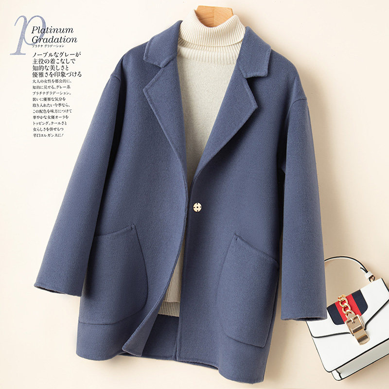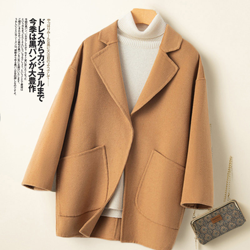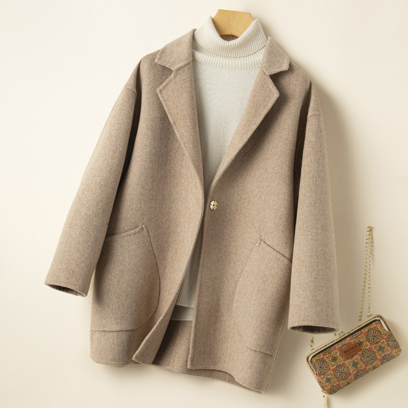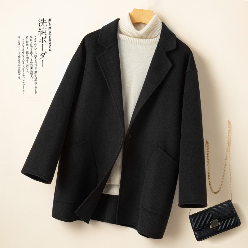 新款反季清仓双面羊绒大衣女短款宽松高端羊毛呢外套茧型西装上衣