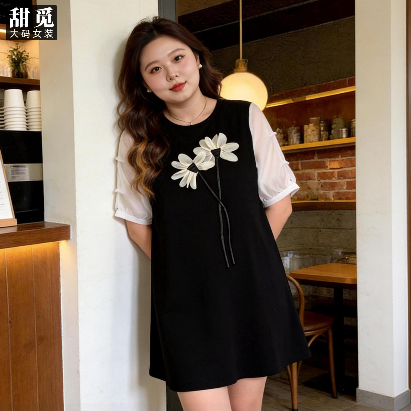 甜觅特大码女装夏装胖mm300斤胖妹妹时尚洋气立体花朵显瘦连衣裙