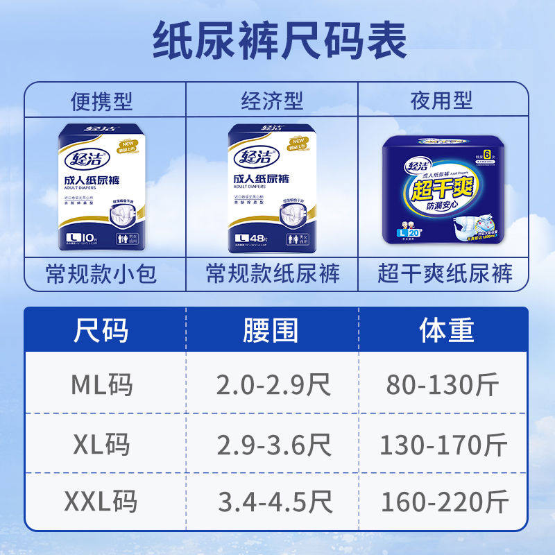 轻洁成人纸尿裤老人用男女士老年专用大号体验装粘贴式尿不湿产妇