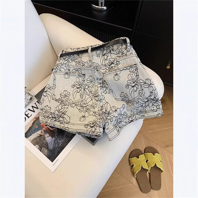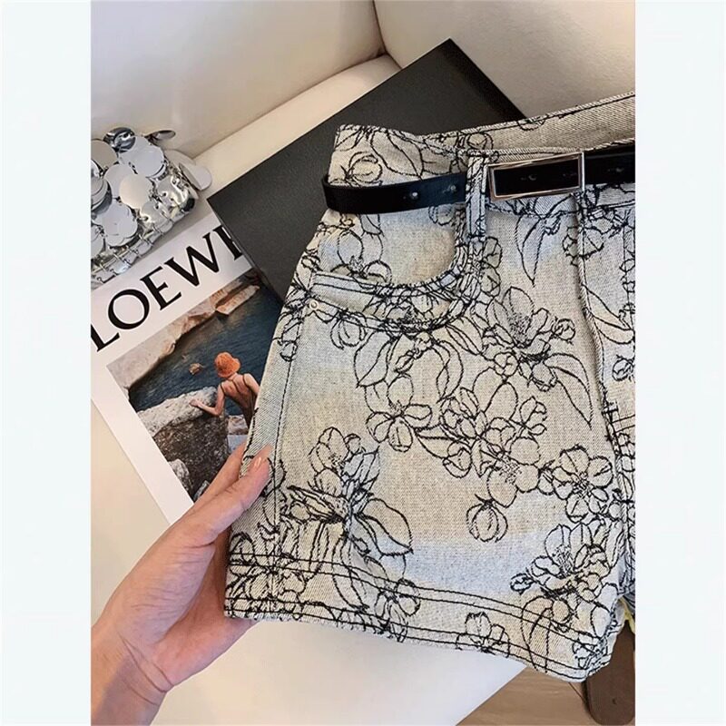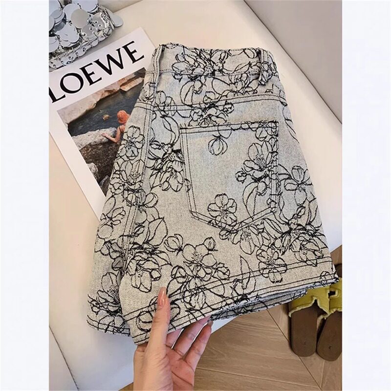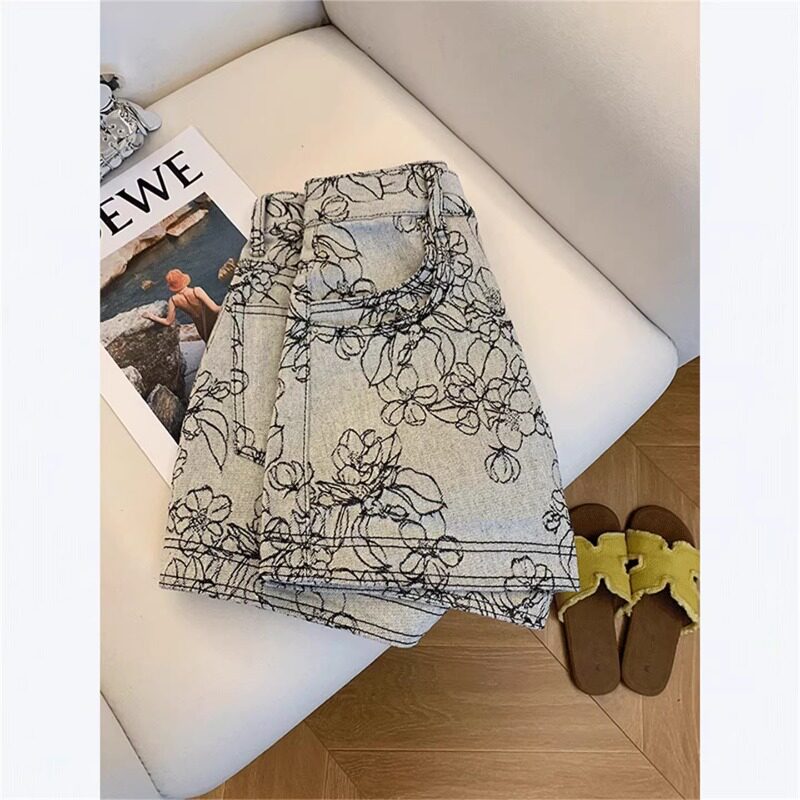 复古提花刺绣A字牛仔短裤女夏天小个子热裤宽松高腰裤子2026新款