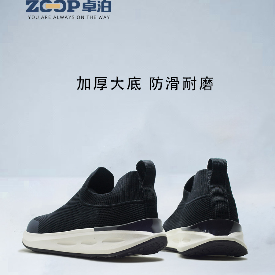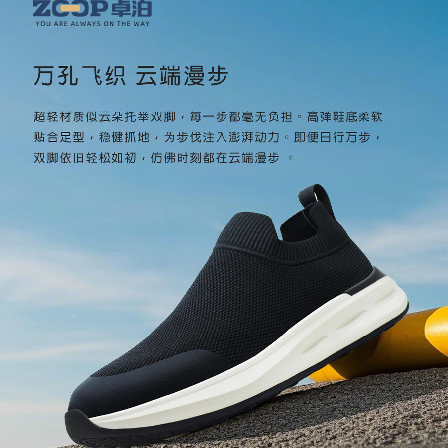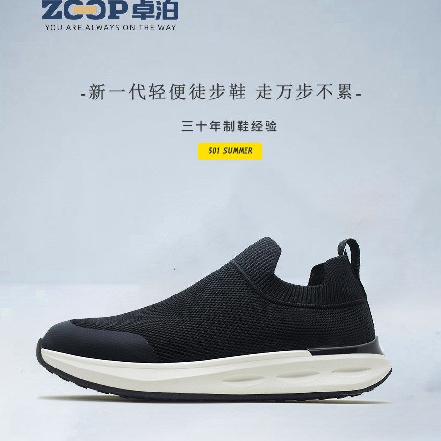 卓泊一脚蹬懒人鞋透气网面休闲鞋男厚底飞织健步鞋子男鞋网鞋软弹