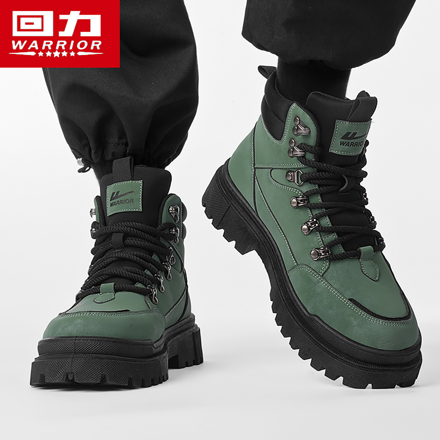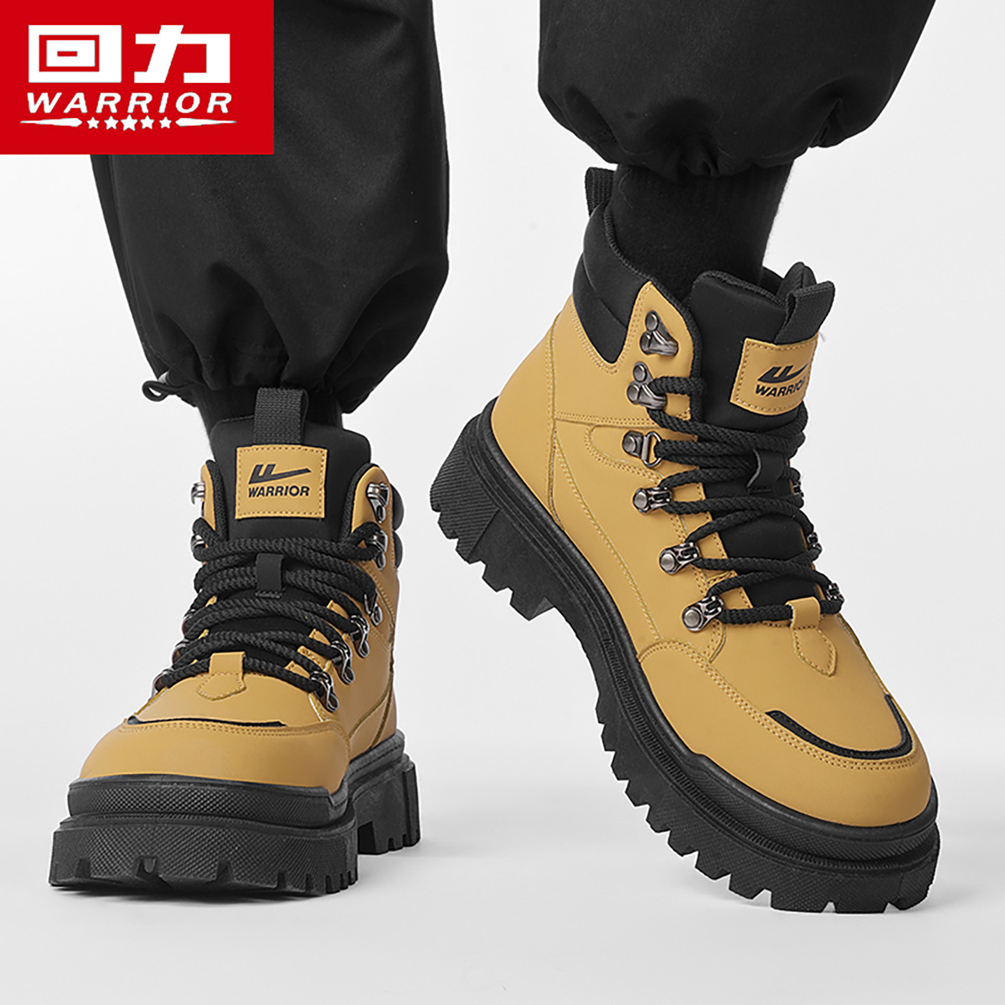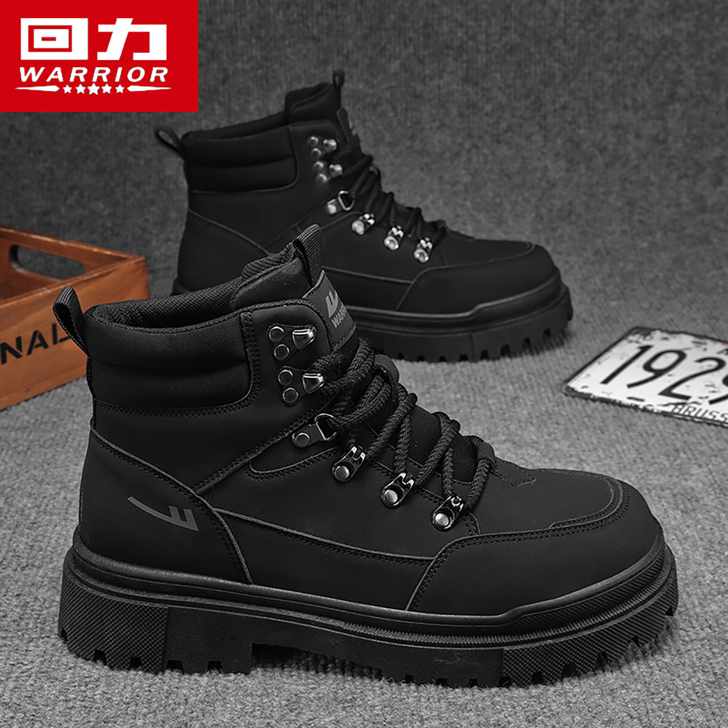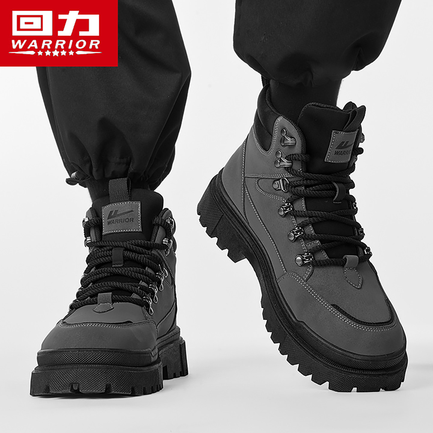 回力马丁靴男款2026春季新款男士皮面防水英伦风高帮休闲工装鞋子