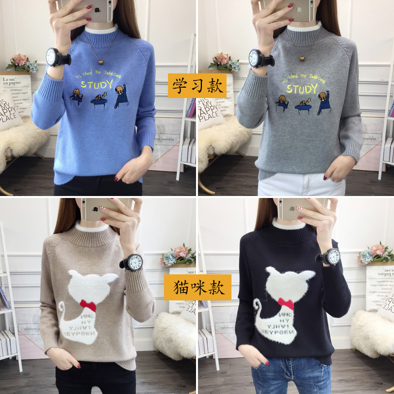 毛衣女秋冬百搭高中生少女初中y学生大童青少年加绒加厚女孩打底