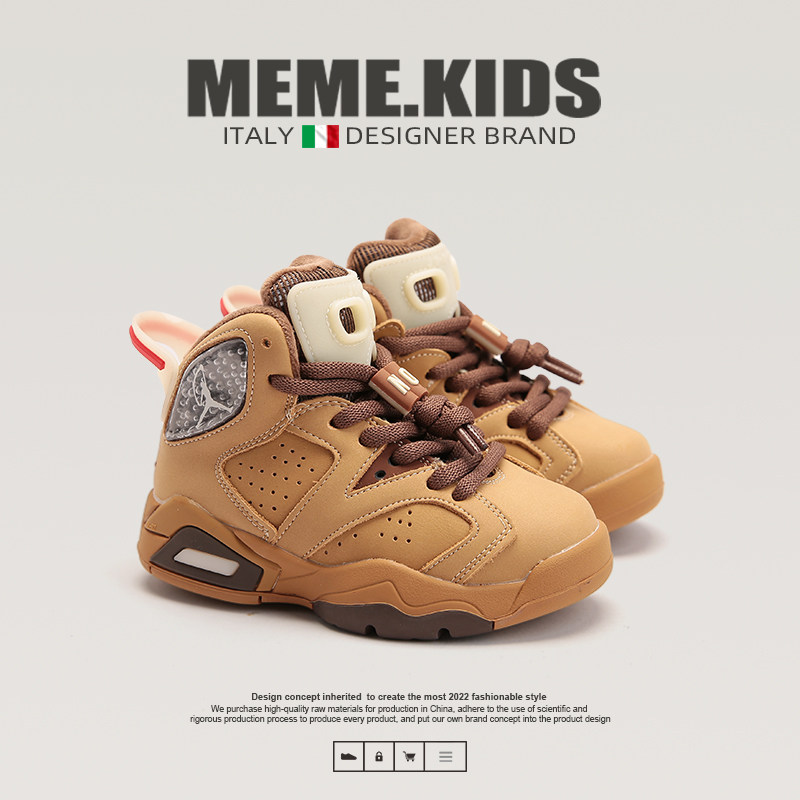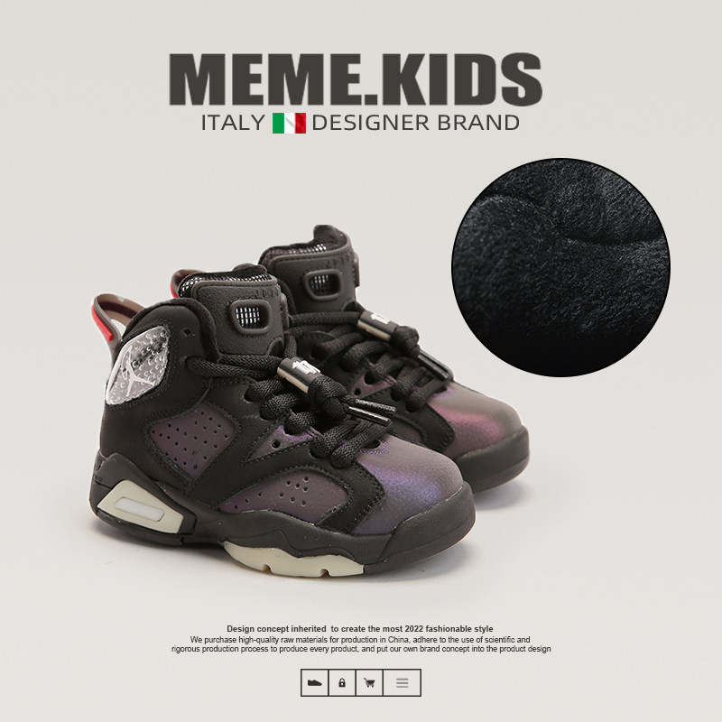 MEMEKIDS黄色儿童高帮加绒篮球鞋男童冬季保暖加厚鞋子女童运动鞋