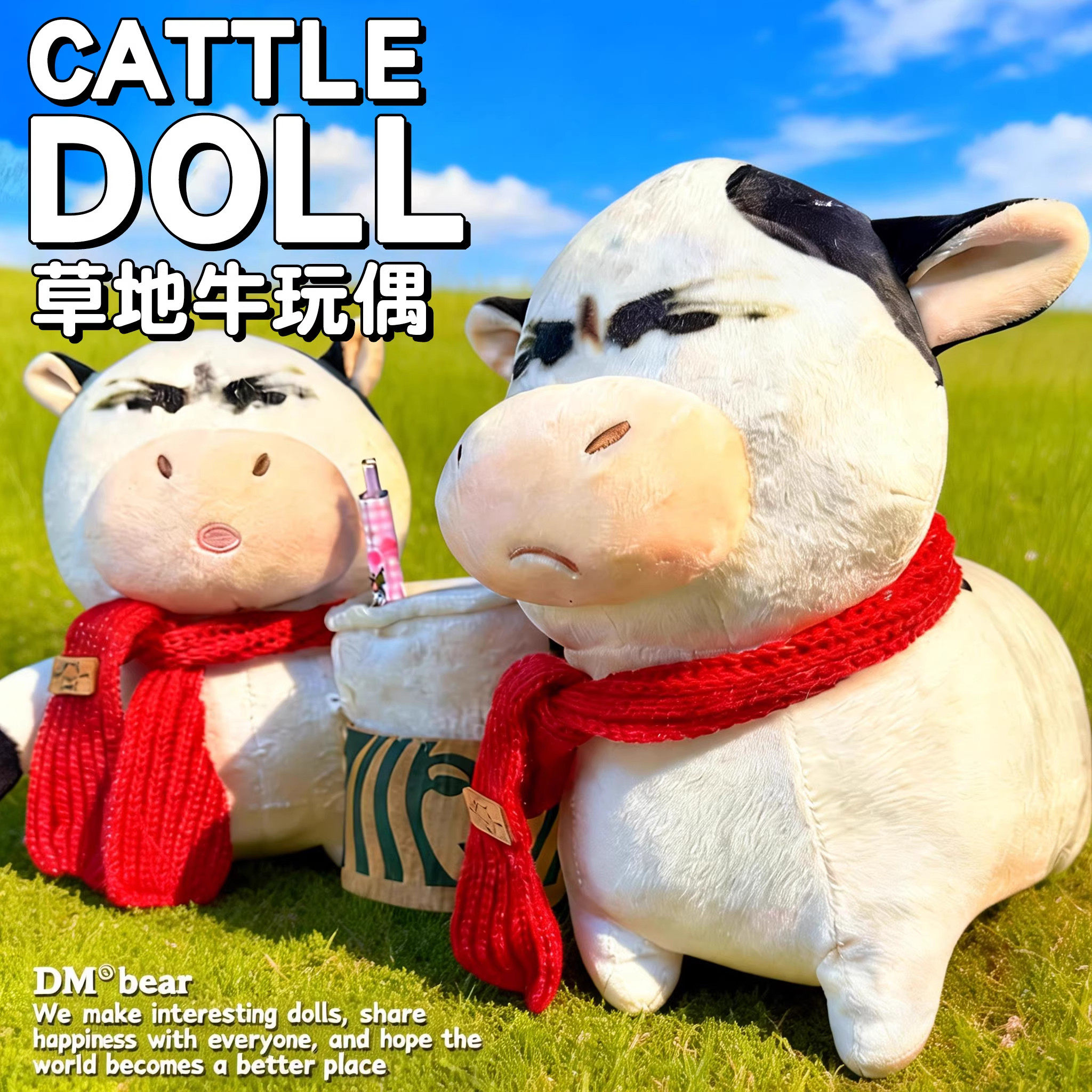 丑萌草地牛玩偶抽象搞怪表情包毛绒玩具大公仔娃娃摆件解闷小玩意