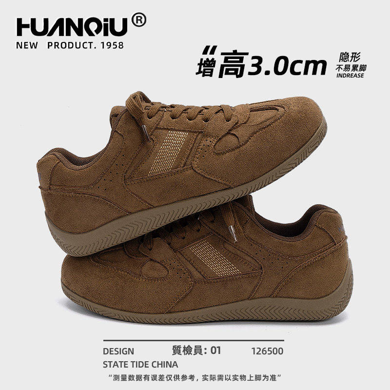 环球内增高德训鞋男2026新款春季系带棕色休闲运动鞋百搭潮流男鞋