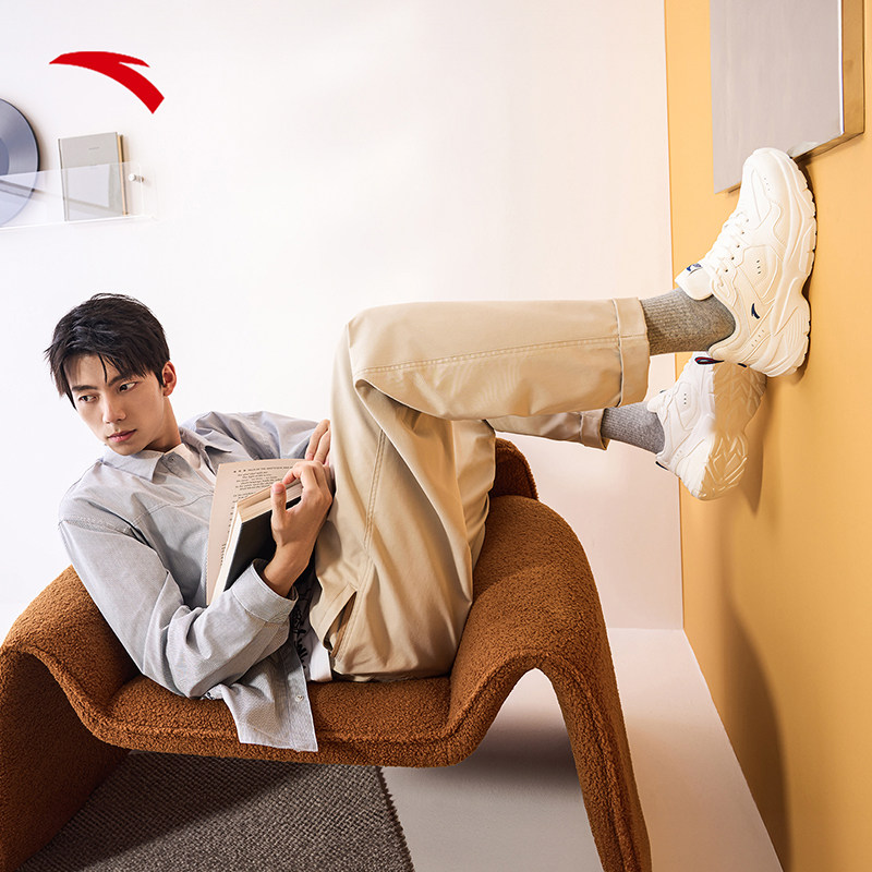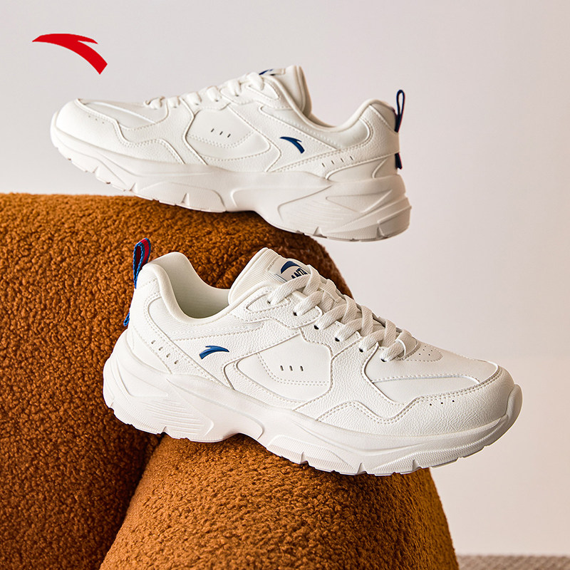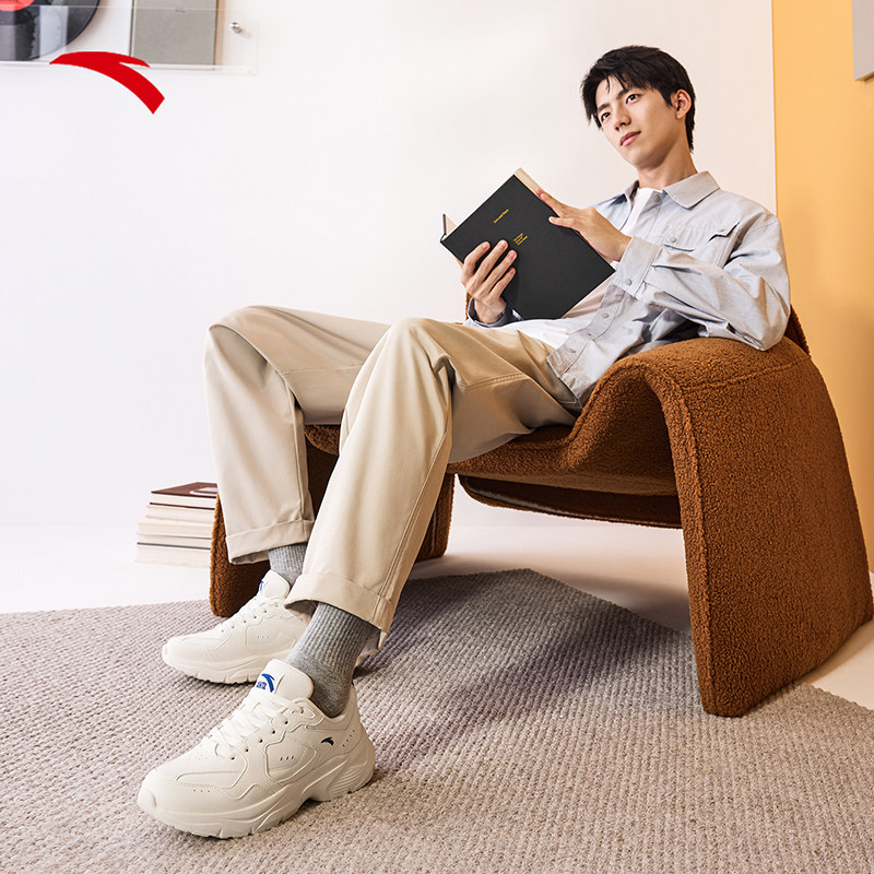 安踏男鞋老爹鞋黑色休闲鞋秋春厚底皮面跑步鞋子官方正品运动鞋男